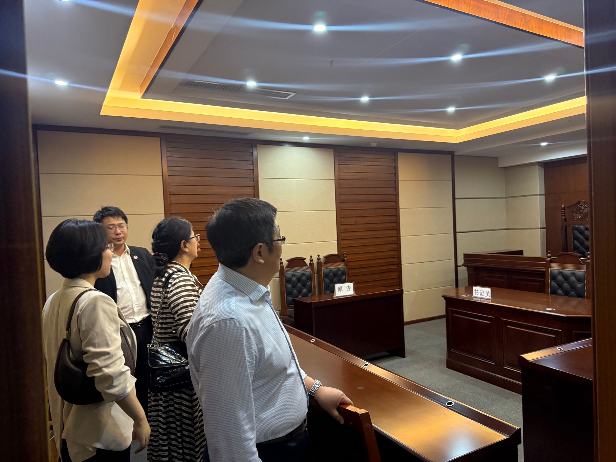 学院一行首先看望了在该所实习的学生,详细了解同学们的实习岗位内容、实务学习进展及日常工作生活情况,叮嘱大家珍惜实践机会,将法学理论知识与法律实务深度融合,恪守法律职业道德,在实践中锤炼专业素养与综合能力。随后,在律所相关负责人陪同下,学院一行实地参观了律所模拟法庭,深入了解实务教学场地建设、模拟法庭实训开展等相关情况。