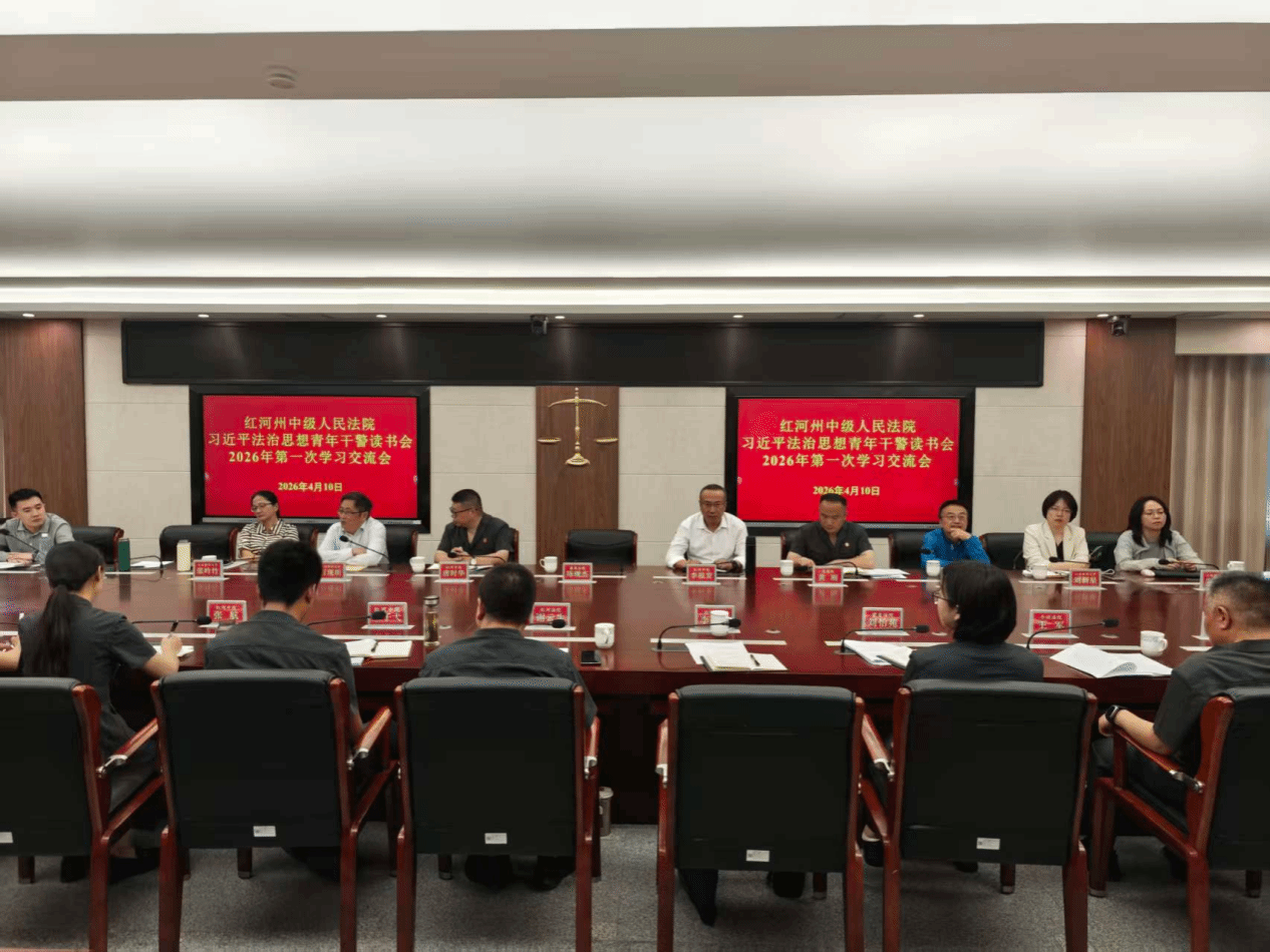 签约仪式与红河州中级人民法院习近平法治思想青年干警读书会2026年第一次学习交流会同步举办。云南财经大学法政学院副书记张吟竹、副院长刘新星、佴澎教授、许敏副教授、朱静洁副教授、青年教师吴沛泽、张黎明、张耀璇、叶舟参会。