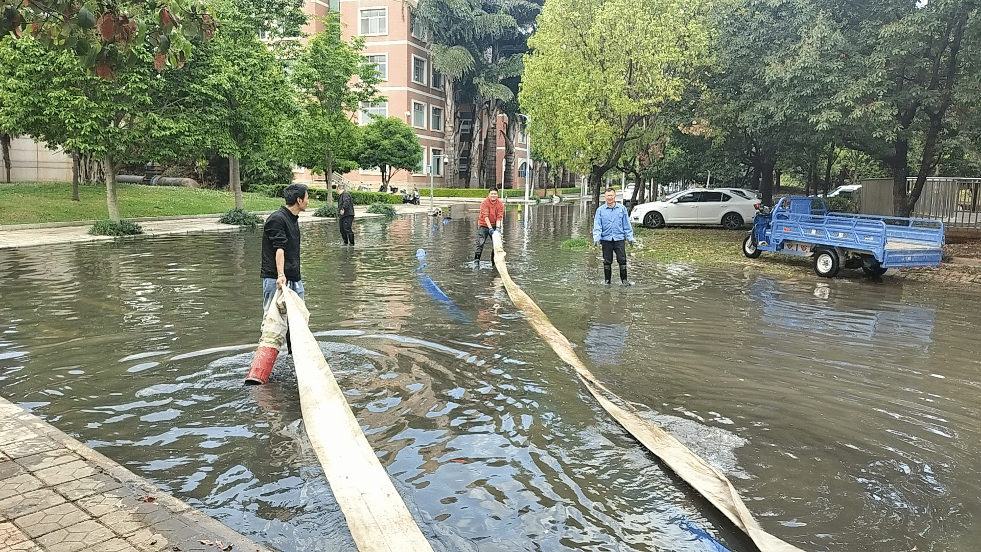 3月29日,昆明市迎来入汛后首次降雨,学校龙泉路校区南院部分区域发生淹积水情况,影响到师生正常出行,后勤产业集团第一时间启动防汛排涝应急处置预案。