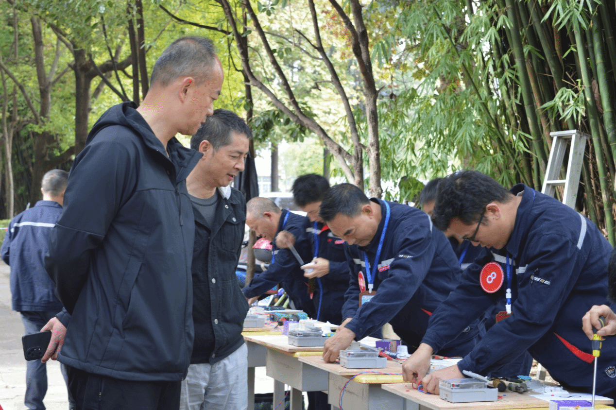本次竞赛以“照明、插座回路设计安装”为比赛项目。参赛选手须在规定时间内完成“回路设计、线路设计”到“设备安装、通电调试”全流程操作,要求接线规范、布局合理并严格遵循电气安全标准。竞赛现场,选手们沉着应对、精细操作,展现出扎实的专业功底与娴熟的实操技巧。评委从设计合理性、安装规范性、安全防护措施及完成时效等方面进行综合打分、评定名次。