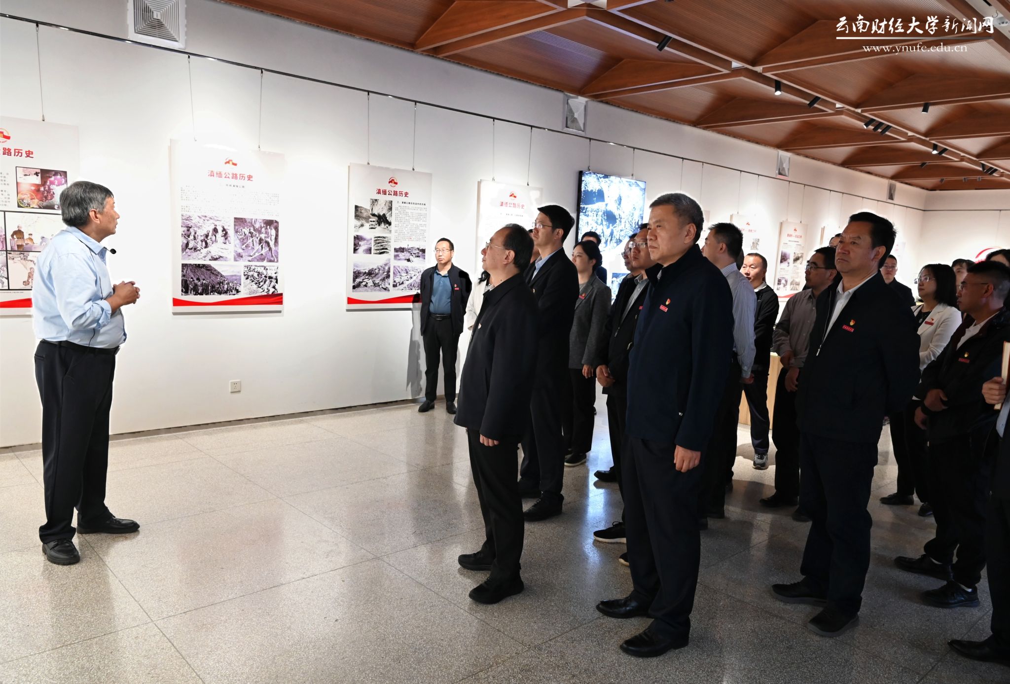 专题学习以“实地参观+现场教学”的模式进行。与会人员参观了“重走滇缅公路 弘扬抗战精神主题展”云南财经大学锺正山美术馆临展,在学校新建文化地标菁华湖畔听校党委书记陈红讲述学校传承“红色基因”、赓续“红色血脉”的办学历史,在云南财经大学面向南亚东南亚辐射中心研究基地展望学校未来发展方向,最后在博源广场校赋石前认真研读“云财赋”、深入领会云财精神内涵,坚定学校乘势而上、攻坚克难的改革发展信心。