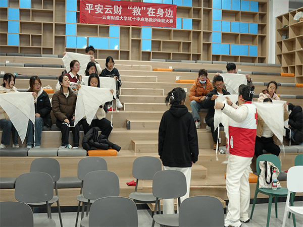 11月24日,“平安云财 ‘救’在身边”应急救护技能大赛在龙泉路校区与安宁校区同步举行。云南省红十字应急救护培训讲师陈红、周晨晨应邀担任评委并作展赛前培训。