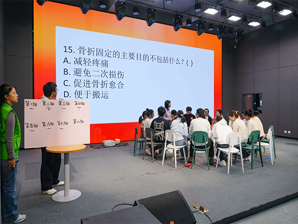 大赛设置笔试、理论知识抢答和实操三个环节,56组112名选手在知识抢答环节反应敏捷,在实操环节动作规范、沉着有序,遵循了“时间就是生命”的急救理念。