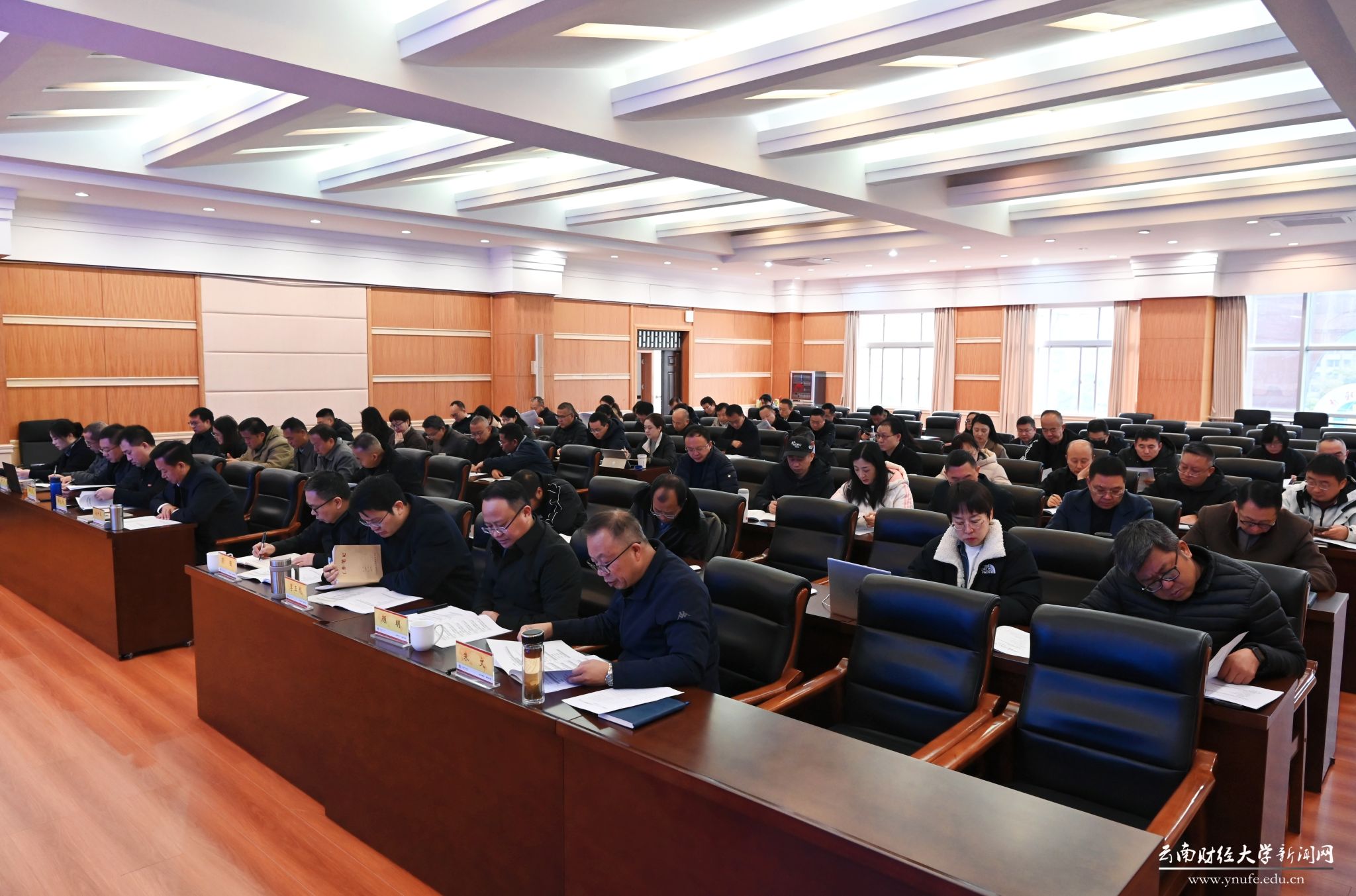 全体校领导、党委委员,职能、教辅、后勤、资产主要负责人,各学院党政主要负责人,各科研院所(中心)主要负责人参加会议。