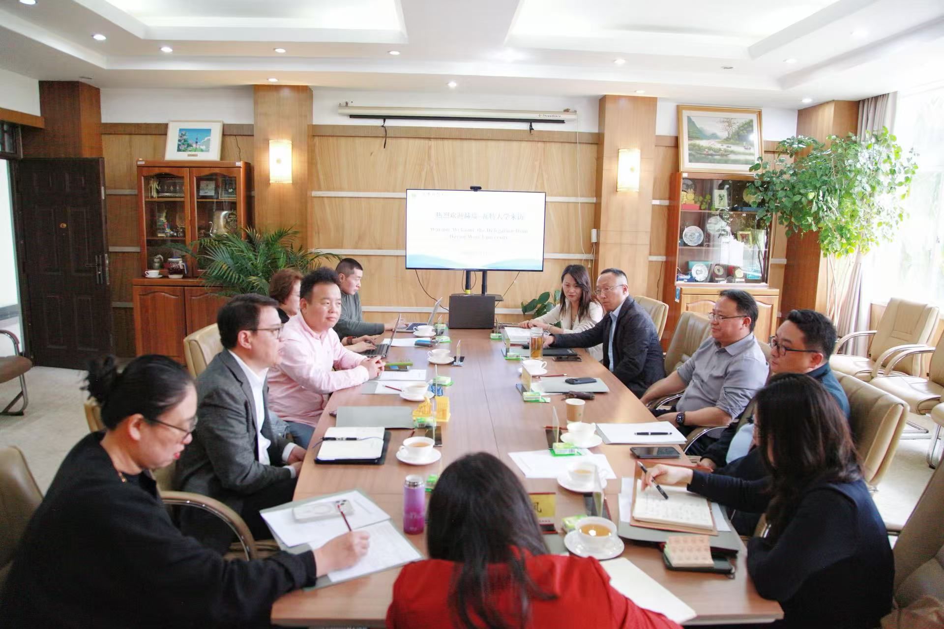 3月31日,英国赫瑞-瓦特大学中国和东亚办公室主任王忠义、伦敦玛丽女王大学东亚区域主任王颖、番茄国际教育首席执行官李永涛一行到访我校。我校副校长颜明会见来宾。双方围绕“3+1”本硕项目的落地实施、专业对接、学分互认、学生派出、奖学金支持、师资与学术交流等事宜展开深入交流。