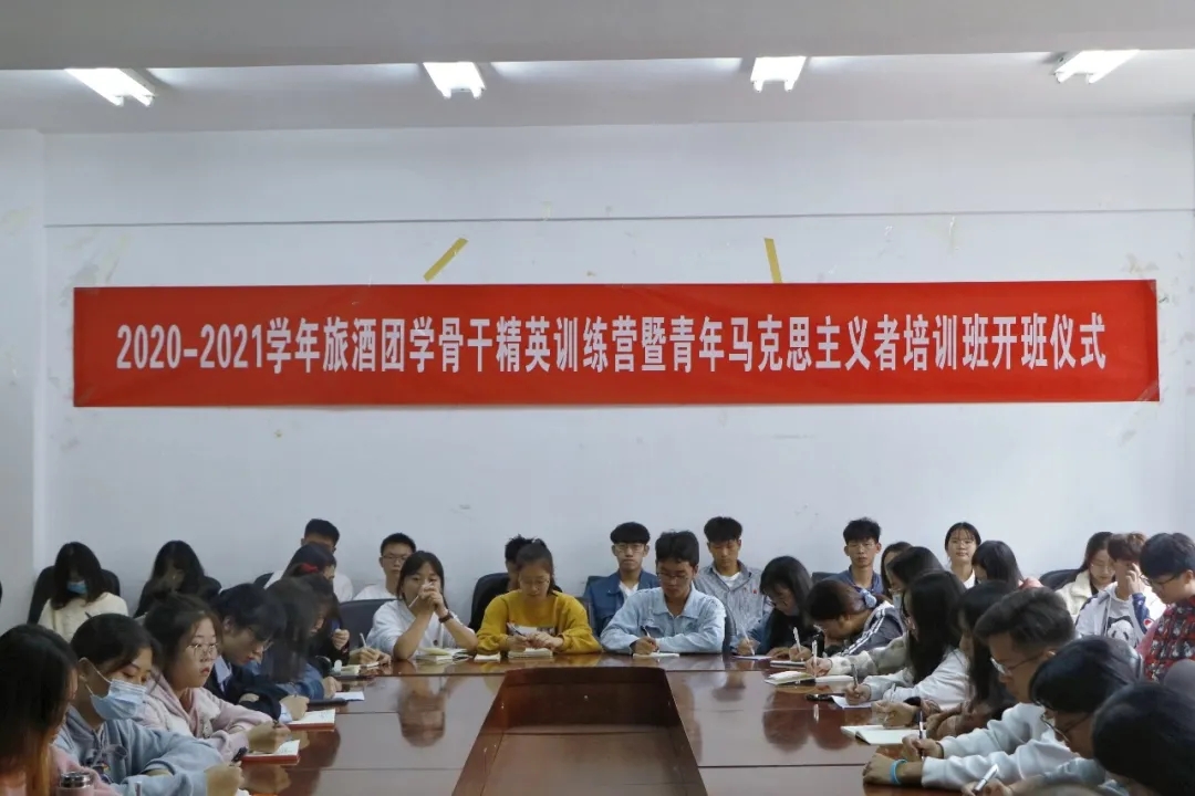 为深入贯彻落实习近平总书记关于青年工作的重要指示,进一步践行《中长期青年发展规划(2016—2025)》精神,10月15日,我校旅游与酒店管理学院在卓远楼213会议室举了2020-2021学年团学骨干精英训练营暨青年马克思主义培训班开班仪式,学院党委书记张向英、院团委负责人代丽虹以及培训班全体团学组织学生骨干参加仪式。