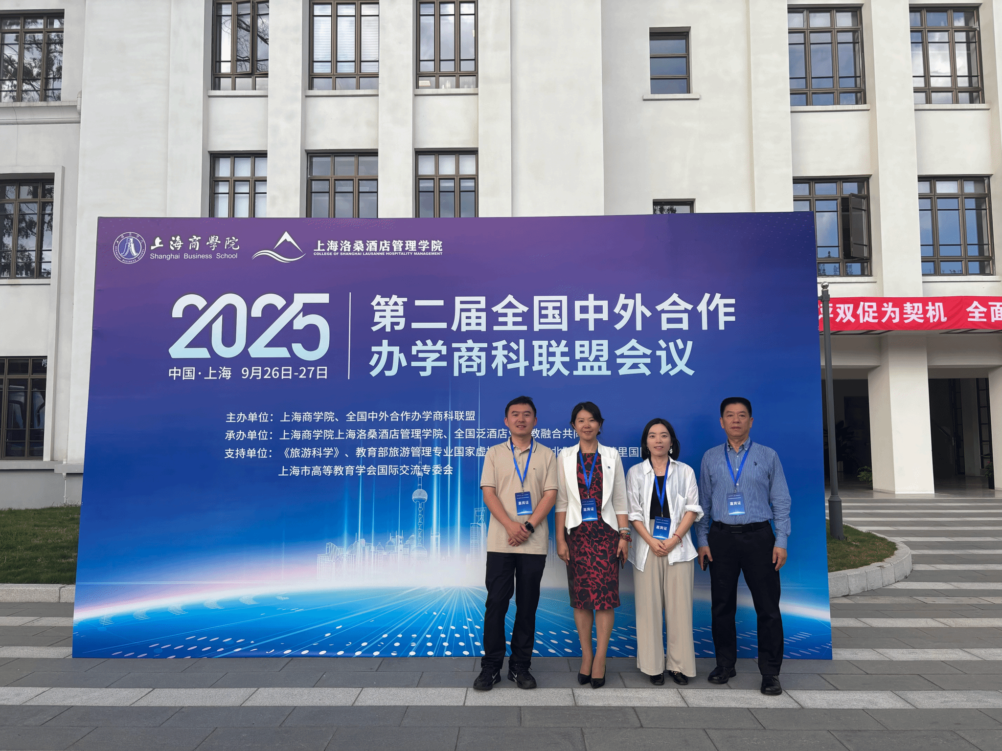 9月25日至27日,旅游与酒店管理学院副院长王智慧、实习实践科科长赵顺顶、组织员张瑞程、瓦岱勒项目负责老师顾莹赴上海参加由上海商学院与全国中外合作办学商科联盟联合主办的第二届全国中外合作办学商科联盟会议。全国多所高校、行业企业及政府机构的专家学者齐聚一堂,围绕“教育强国背景下的高校中外合作办学”“人工智能赋能产业变革”等前沿议题展开深入交流,共同探讨新时代商科教育高质量发展的路径与方向。