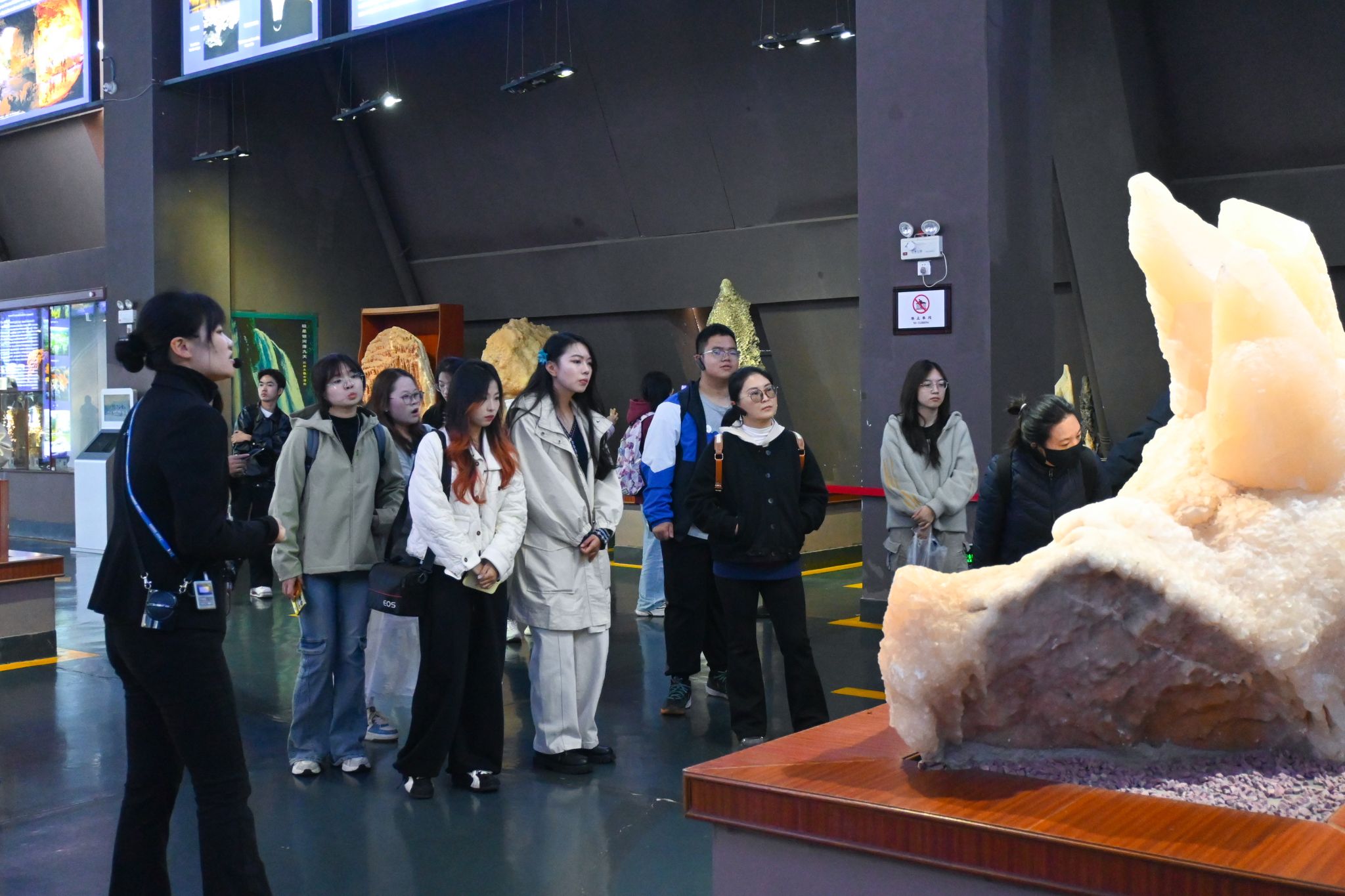 参观石得利地质博物馆是本次活动的核心环节,上午10点,同学们跟随博物馆讲解员的脚步进入博物馆,依次参观了形态各异、造型奇特的钟乳石、古生物化石、地矿标本、天然石、珍稀树木等展陈。