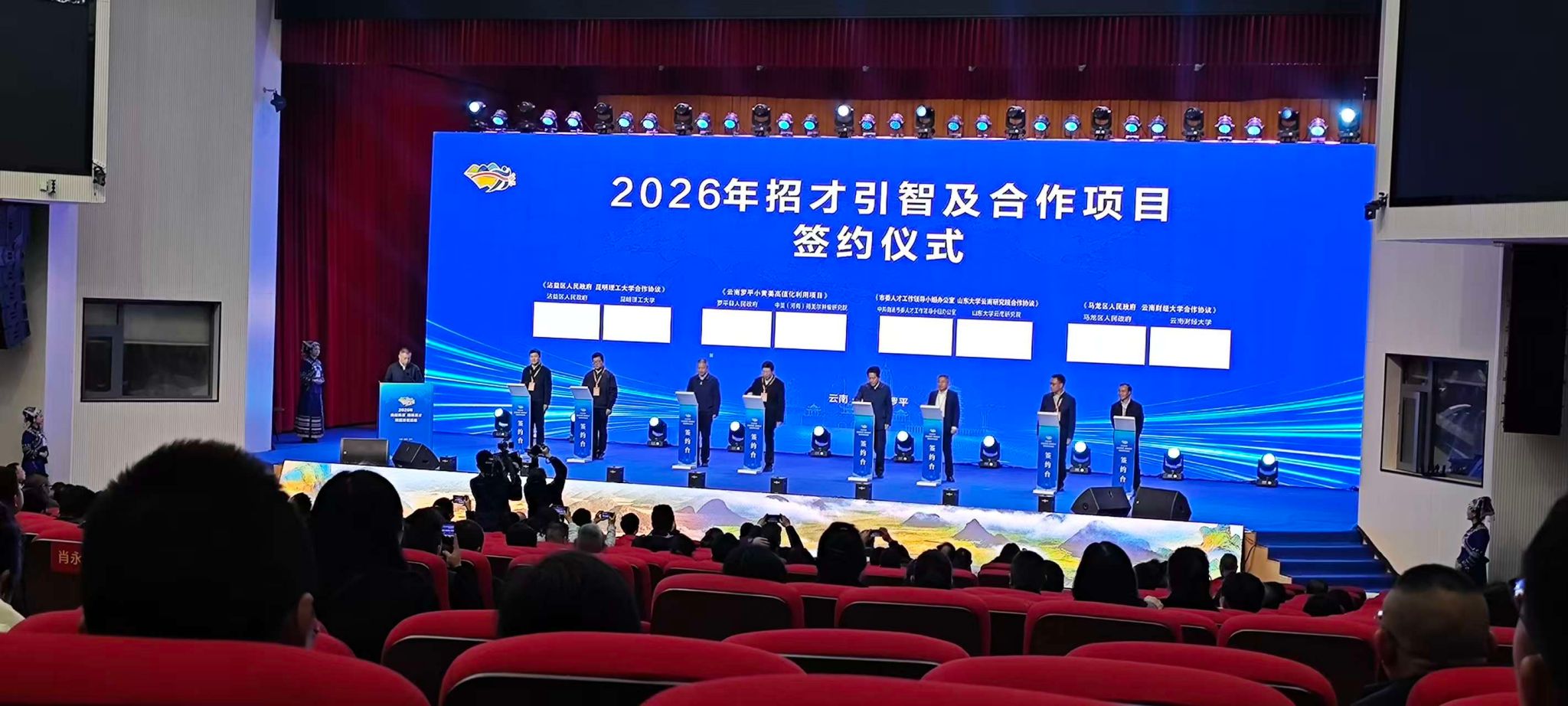 3月14日,曲靖市委、市政府在罗平县举办2026“曲起珠源 靖候英才”双招双引活动,我校旅游与酒店管理学院院长晏雄代表学校与马龙区人民政府常务副区长冯中雁签订战略合作协议。
