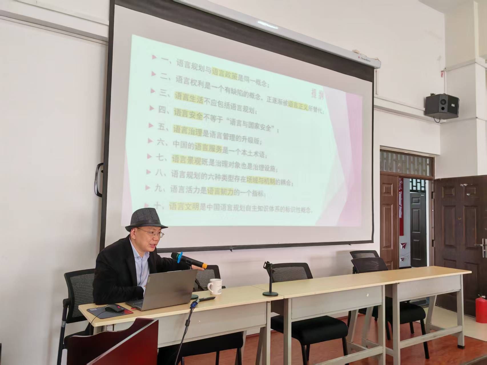 4月16日,国际语言文化学院举办第17期“语彩”学术讲坛。南京大学方小兵教授以“语言规划研究的十大争议问题”为题作学术讲座。国际语言文化学院院长刘代容主持讲座,学院70余名师生参加活动。