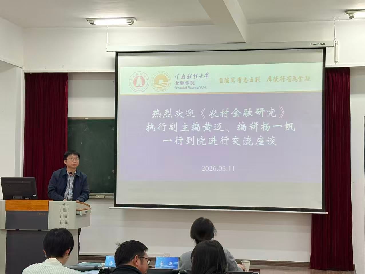 3月11日,《农村金融研究》执行副主编黄迈、编辑杨一帆到金融学院开展选题征稿交流座谈。金融学院师生80余人参加座谈会。