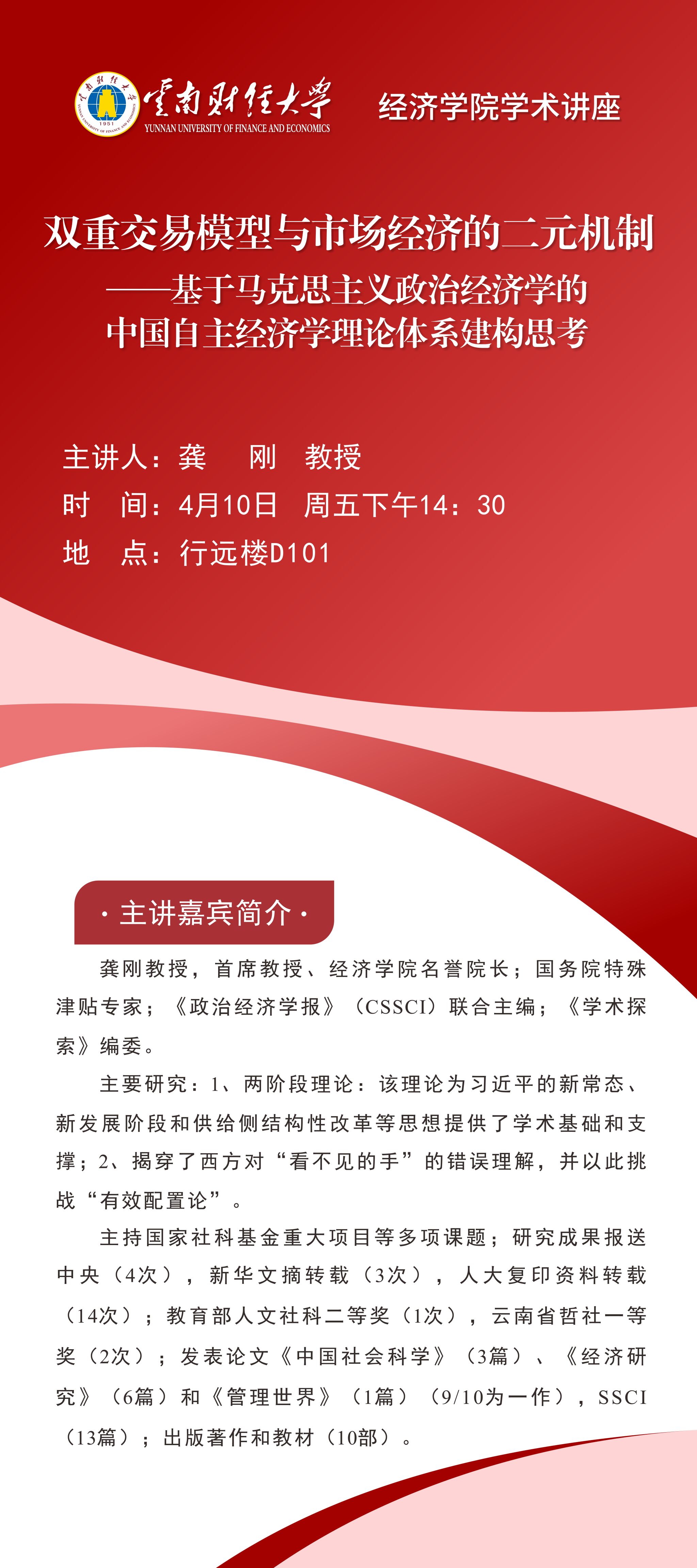 经济学院学术讲座预告:龚刚教授解读双重交易模型,探索中国经济学自主之路