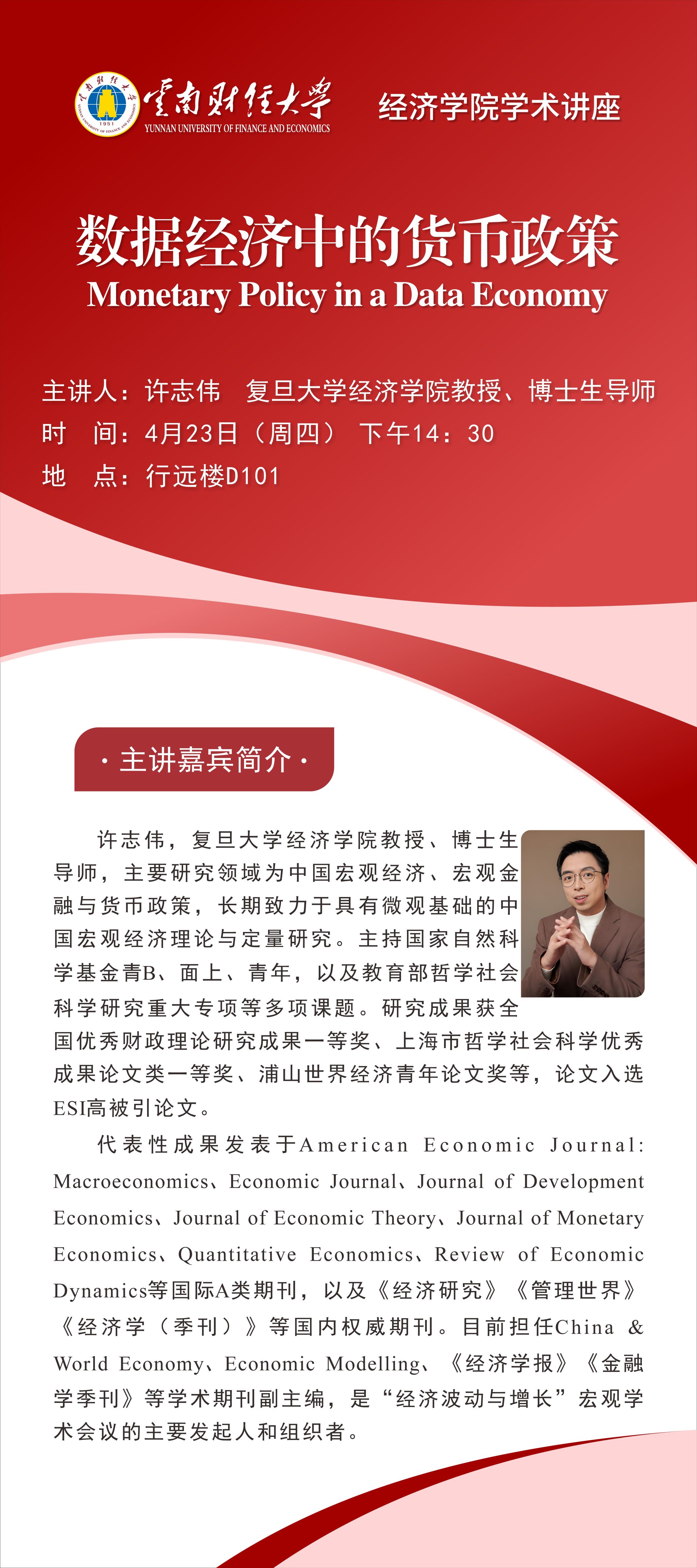 经济学院学术讲座预告:许志伟教授解读数据经济中的货币政策,探索宏观政策新范式