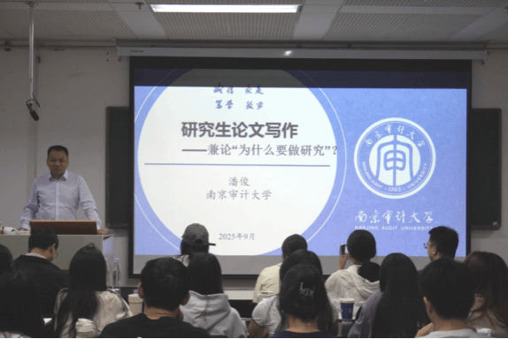 2025年9月13日,由云南财经大学会计(审计)学院主办的第十五期“会计与公司治理”论坛在逸夫楼804顺利举行。本次活动邀请到博士生导师、南京审计大学潘俊教授做《研究生论文写作——兼论“为什么要做研究”》的主题演讲,云南财经大学研究生院院长纳超洪教授主持此次演讲,学院60余名师生代表积极参会。