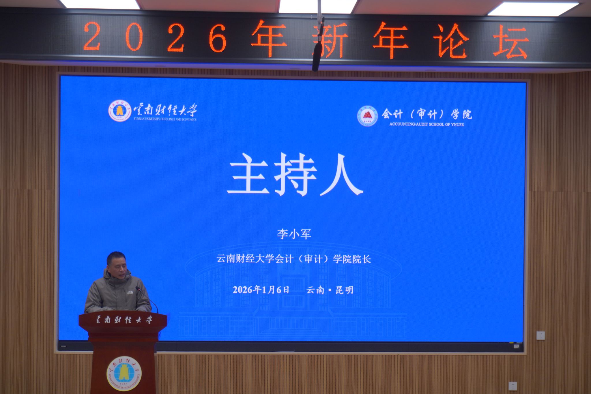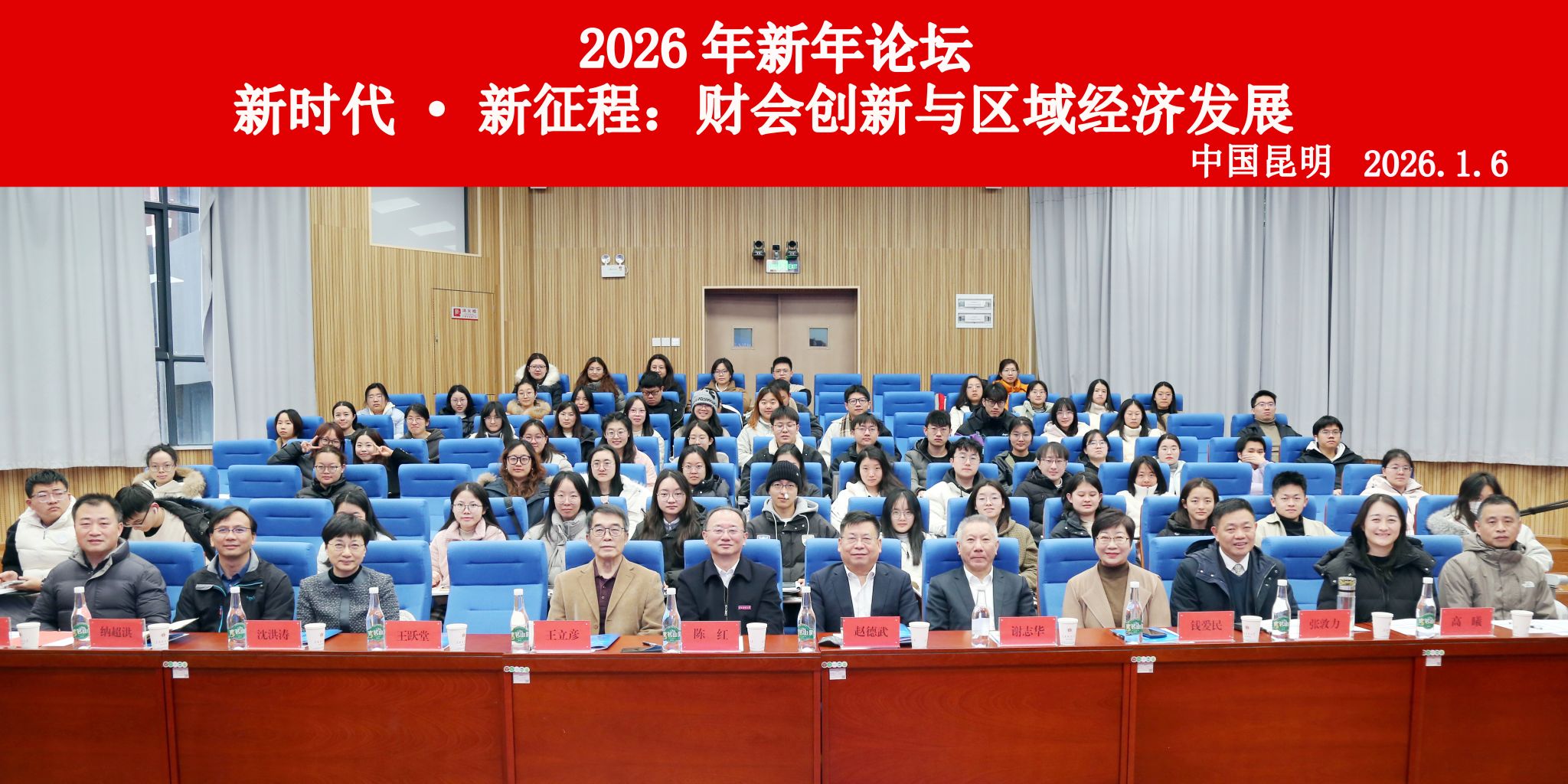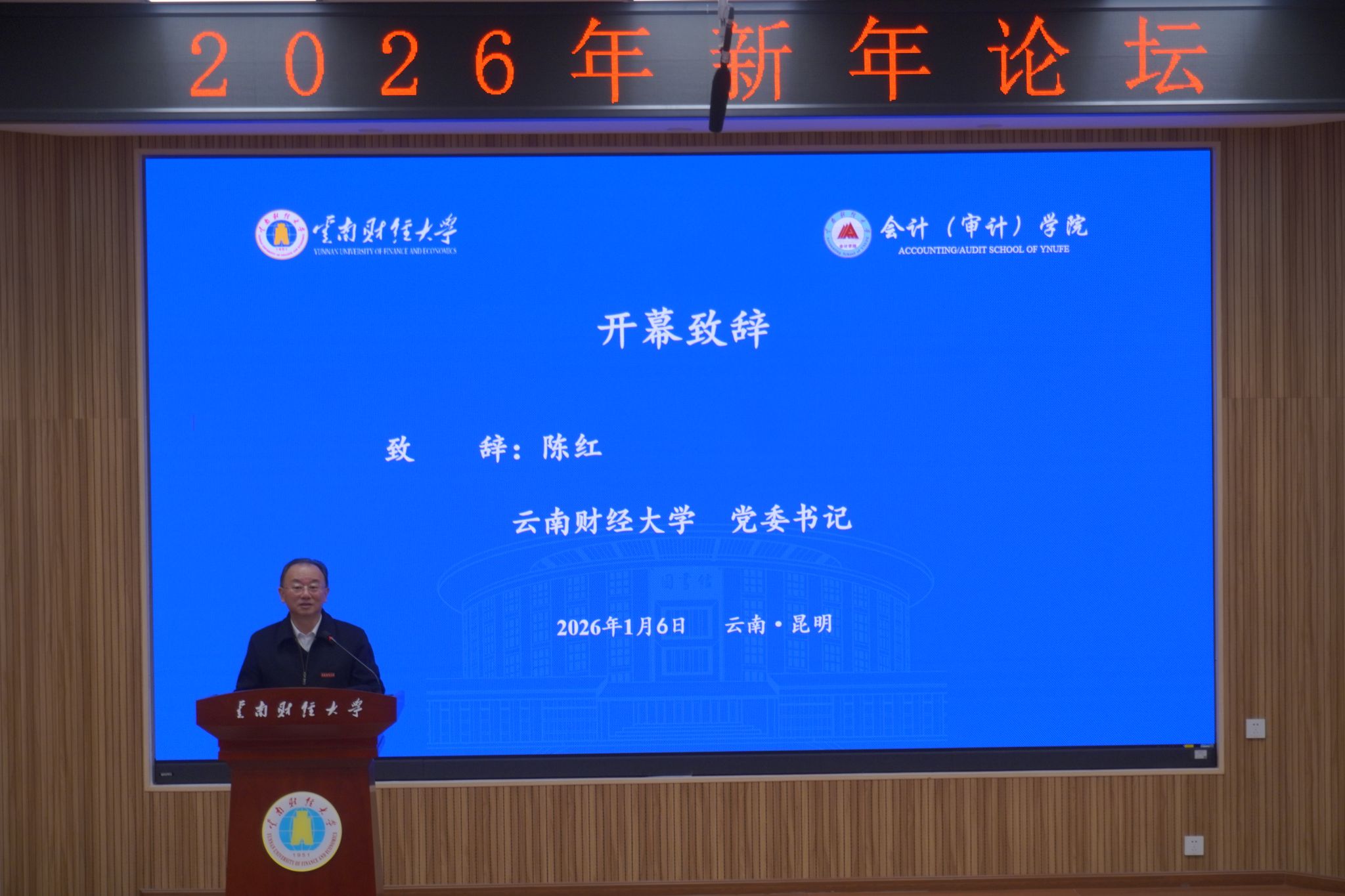 2026年1月6日,“新时代·新征程:财会创新与区域经济发展”2026年新年论坛在云南财经大学龙泉校区成功举办。本次会议由云南财经大学主办,云南财经大学会计(审计)学院承办。云南财经大学党委书记陈红教授、云南财经大学副校长余怒涛教授、北京大学王立彦教授、北京工商大学谢志华教授、西南财经大学赵德武教授、中南财经政法大学张敦力教授、对外经贸大学钱爱民教授、暨南大学沈洪涛教授以及云南财经大学120余名师生代表参加会议。