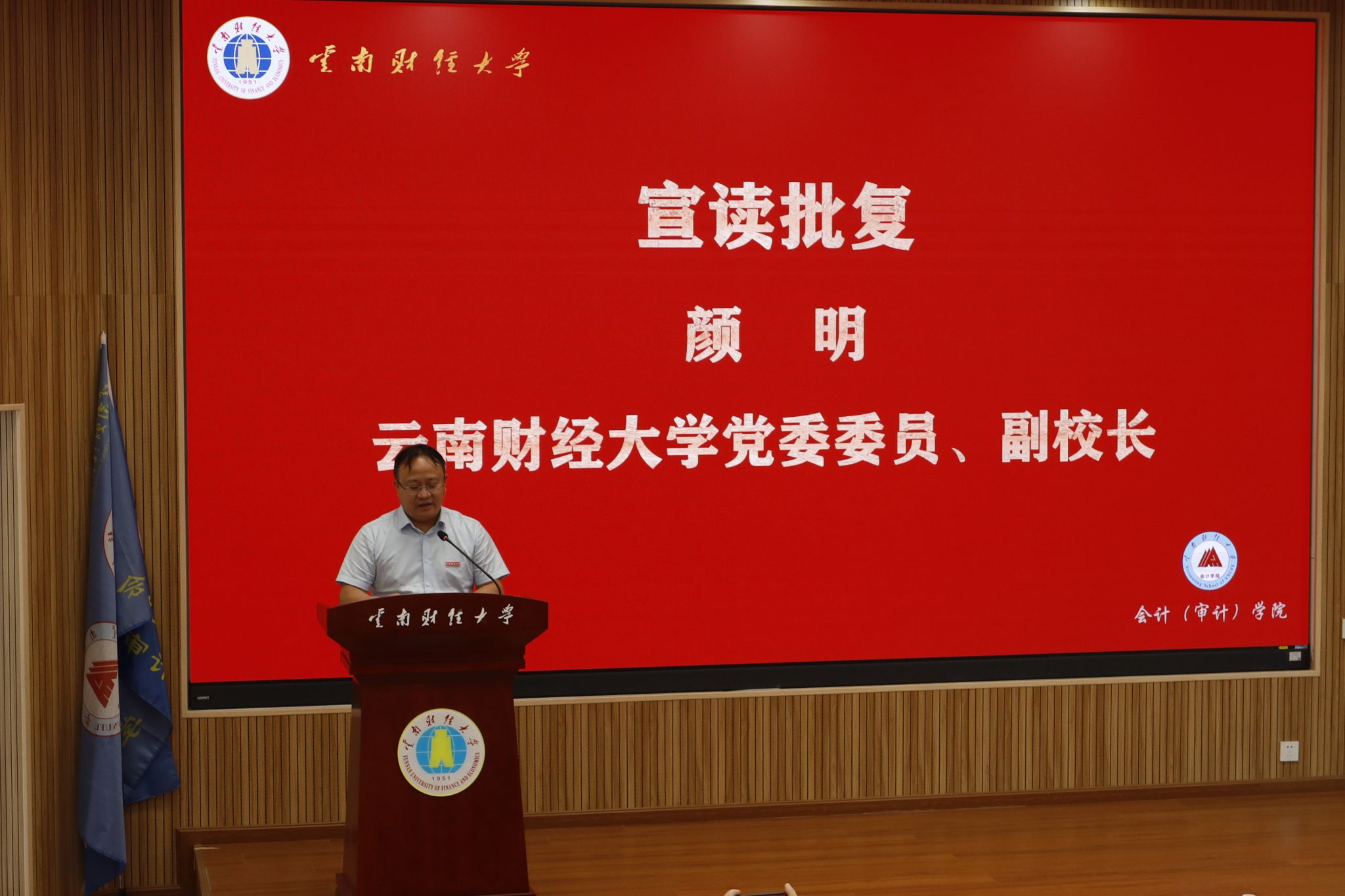 颜明副校长宣读了学校《关于同意成立云南财经大学校友会会计(审计)学院分会的批复》。