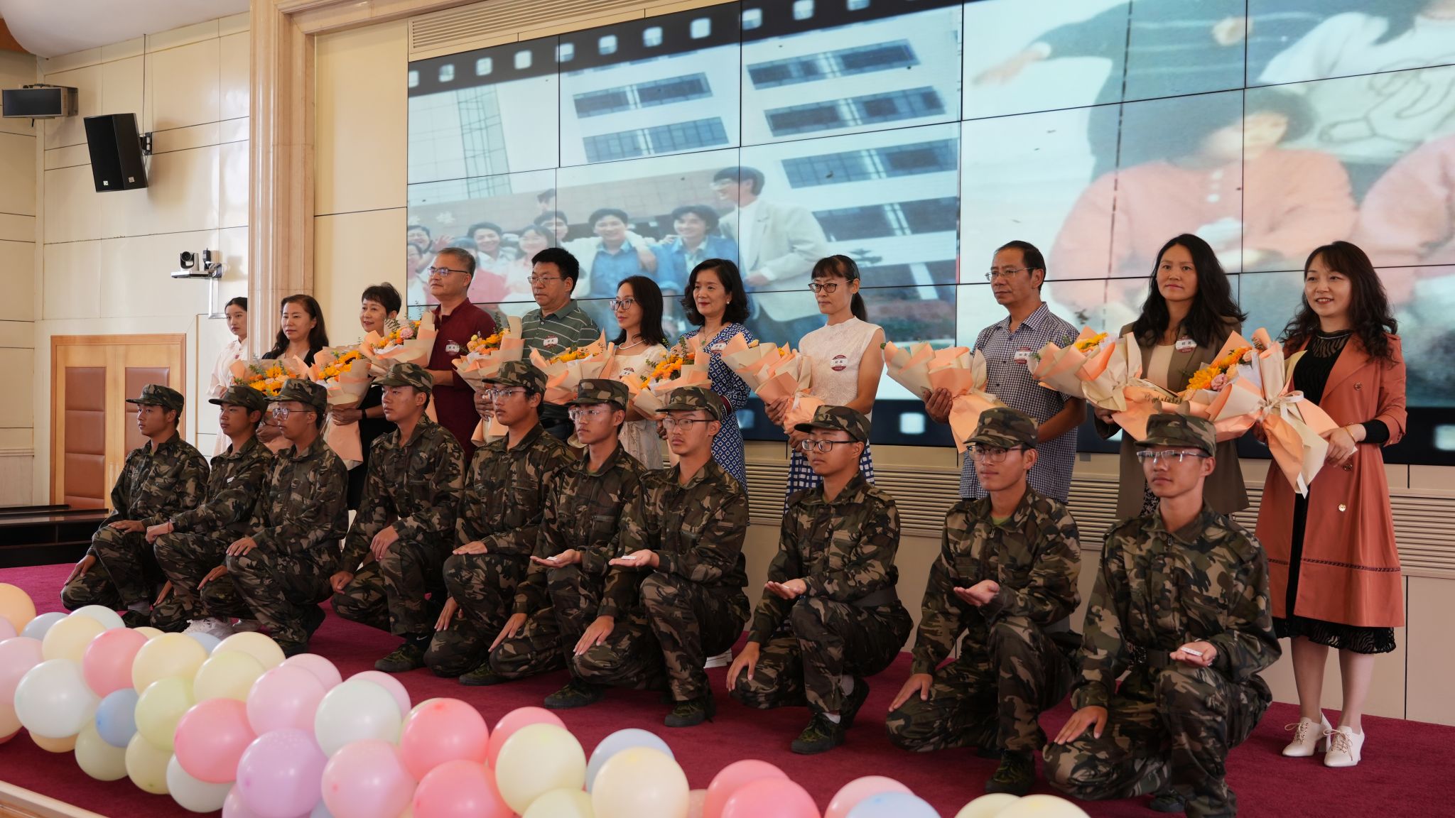 活动开始,校友代表们为大一新生赠送校徽、新生代表为校友代表献上鲜花。人生的序章,始于初秋,从远方而来,跨越山海,奔赴下一场诗与远方。赠校徽、献鲜花,皆为传承,既有校友代表对后辈的殷切希望、也蕴含着新生代表对优秀校友的诚挚敬意。