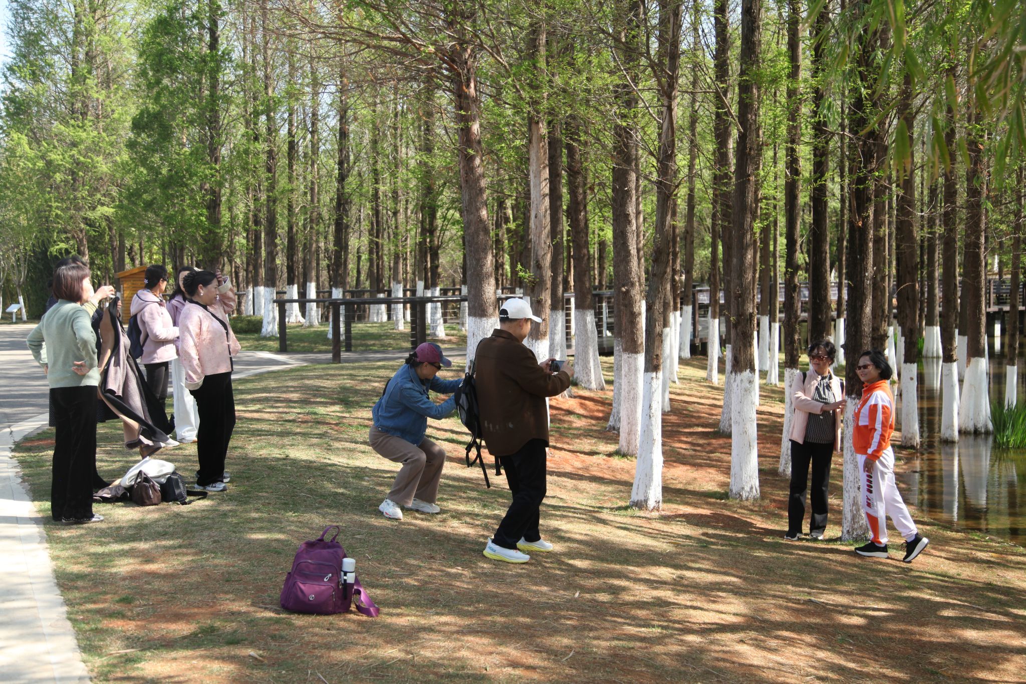随后,大家来到被誉为“城市绿肺”的宝丰湿地公园。这里水清岸绿,鸥鸟翔集,草木萌发,一派生机盎然的春日景象。老同志们沿着亲水步道漫步,呼吸着清新空气,欣赏着湖光山色,不时用手机记录下优美的湿地风光与欢聚的温馨时刻。湿地完善的生态系统和生物多样性保护成果,让大家切身感受到了“绿水青山就是金山银山”理念在昆明的生动实践,也对昆明坚持生态优先、绿色发展之路给予了高度评价。