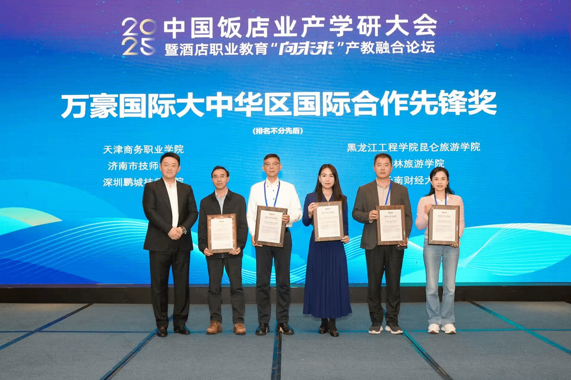在大会颁奖典礼上,云南财经大学旅游与酒店管理学院获得万豪国际大中华区国际“合作先锋奖”。此奖项由万豪国际集团大中华区关系部门牵头,联合集团旗下455家运营酒店开展的“万豪国际集团校企合作院校奖项评选”中,我校从全国852所合作院校中脱颖而出,这一奖项是认可我校积极参与开拓境外院校师生交流、行业企业合作、真正实现国际联合培养,在国际标准本土化落地方面取得突破的院校。