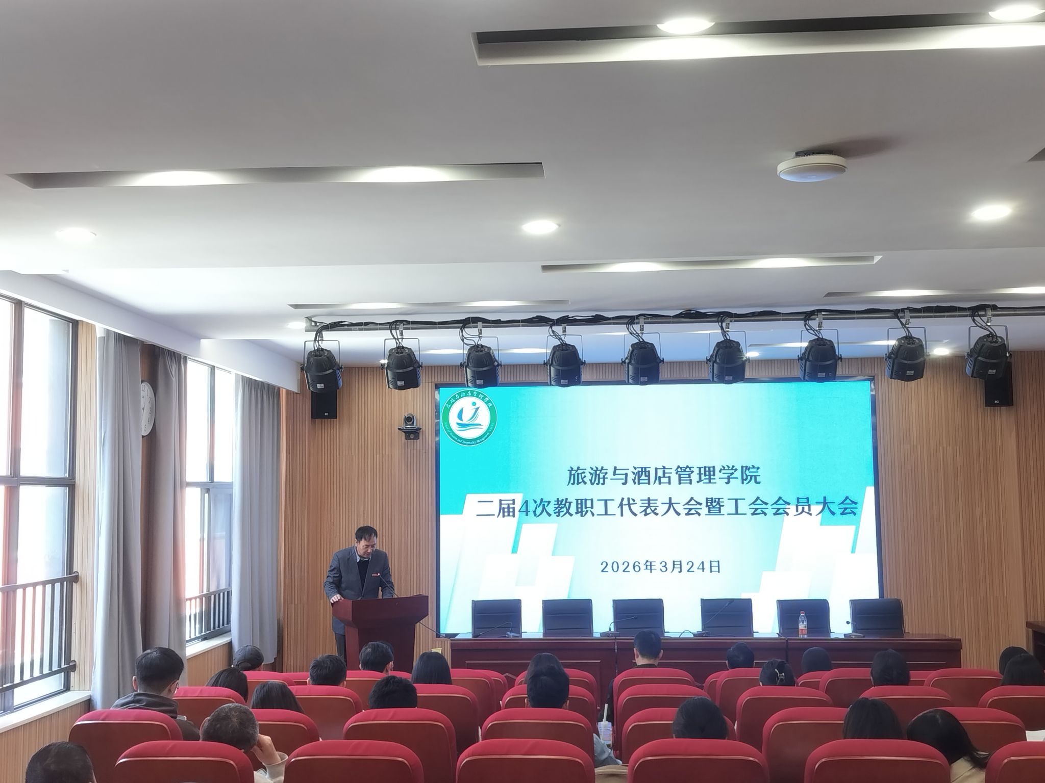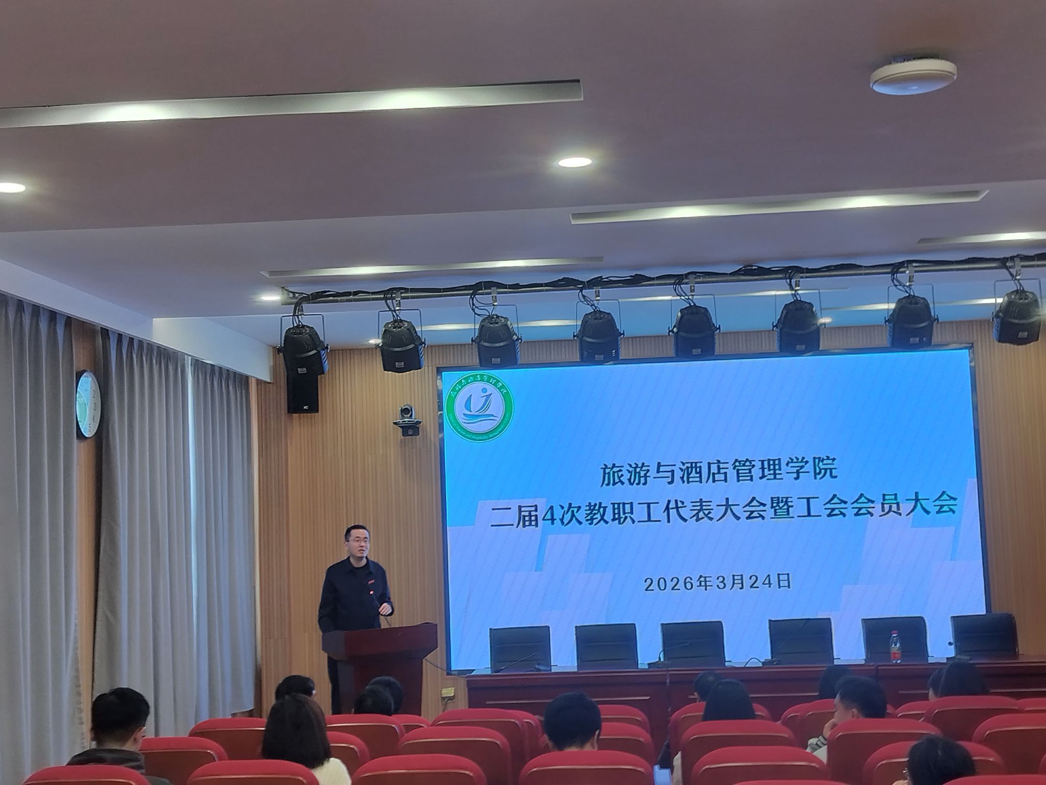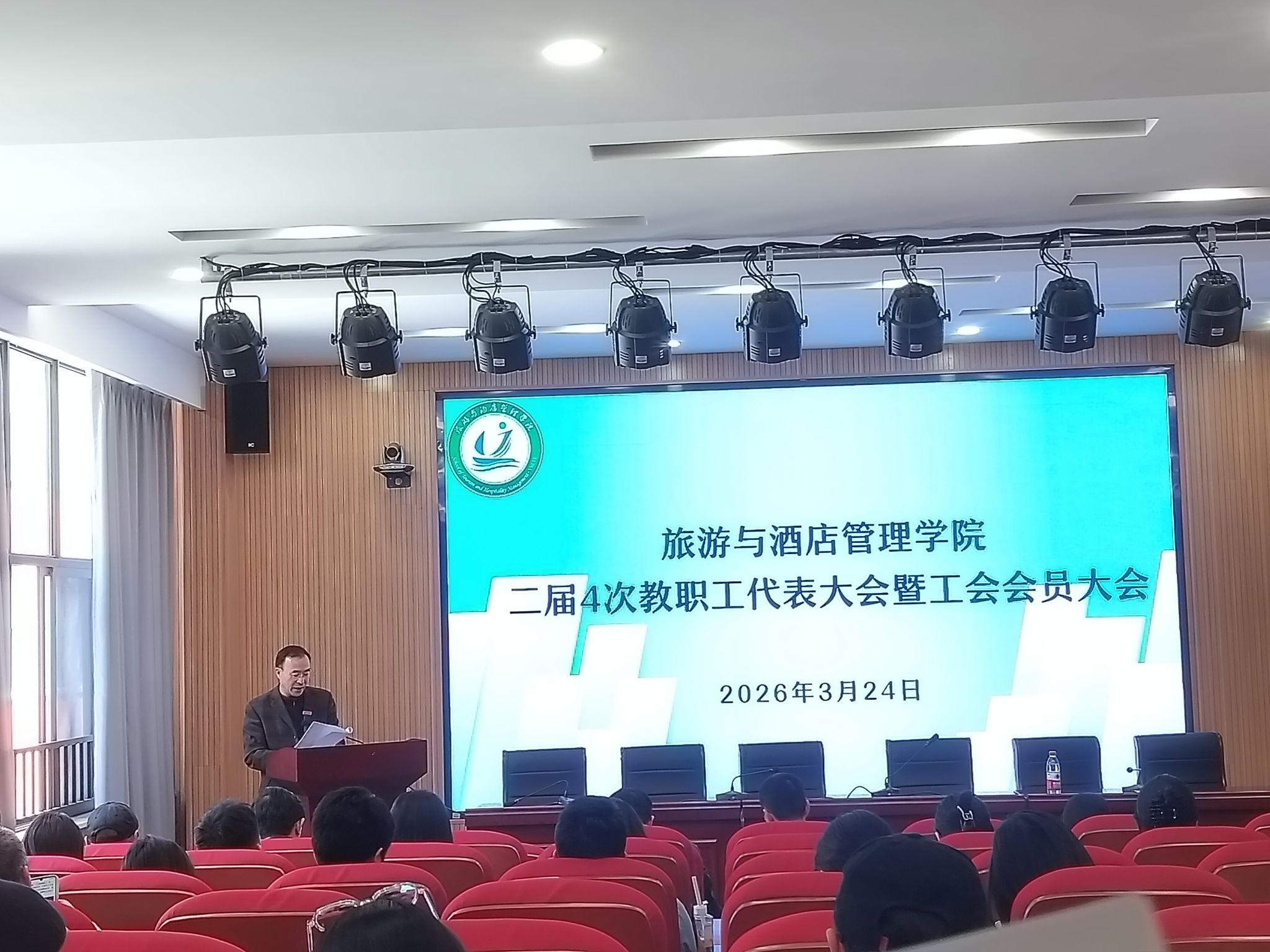 3月24日下午,旅游与酒店管理学院在齐远楼220多功能报告厅召开二届四次教职工代表大会暨工会会员大会。