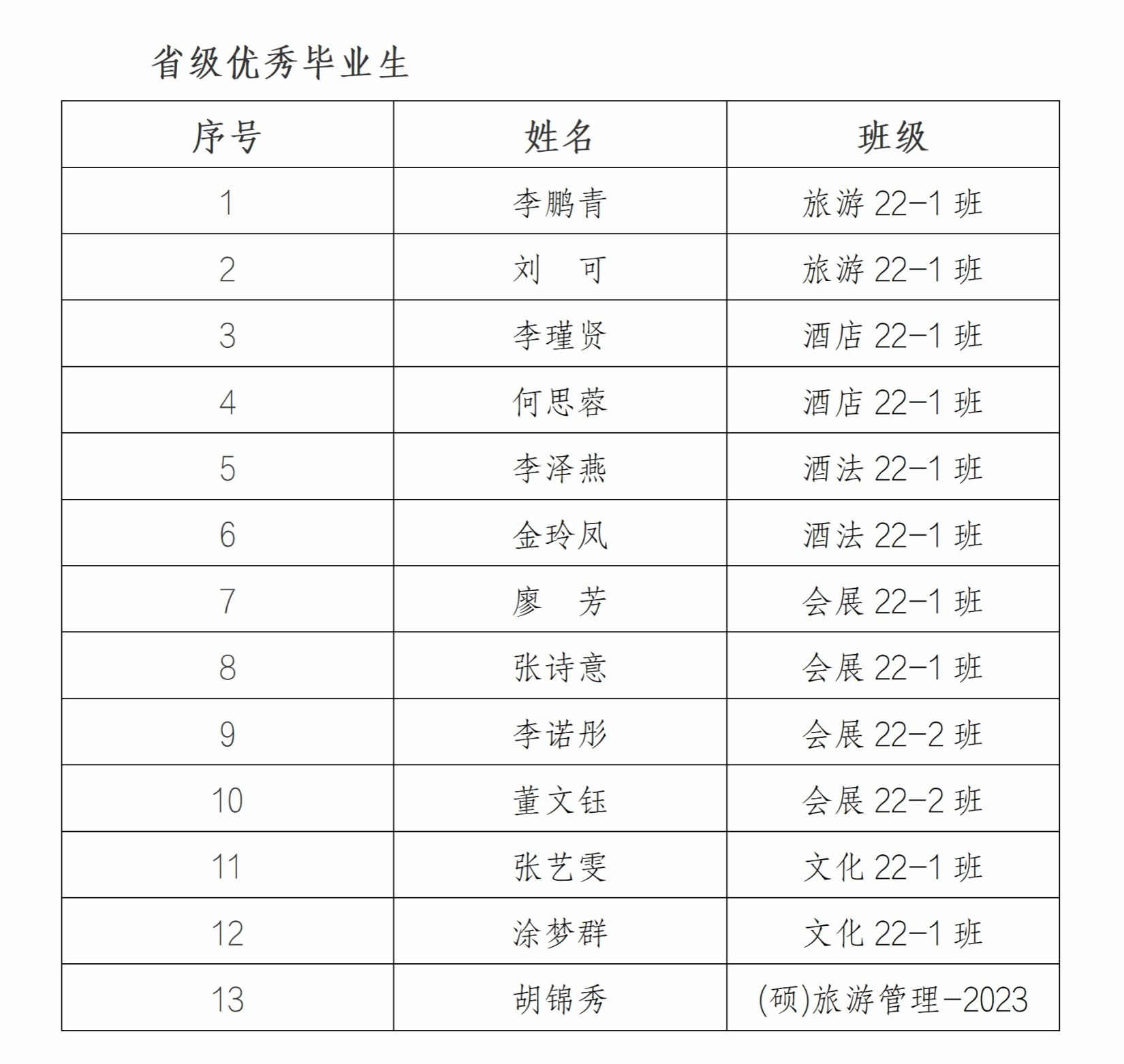 根据《云南财经大学关于开展2026届省级和校级优秀毕业生推选工作的通知》要求,经班级评选推荐、学院审核、学院学生工作小组评议,现将旅游与酒店管理学院2026届省级、校级优秀毕业生推荐名单予以公示。