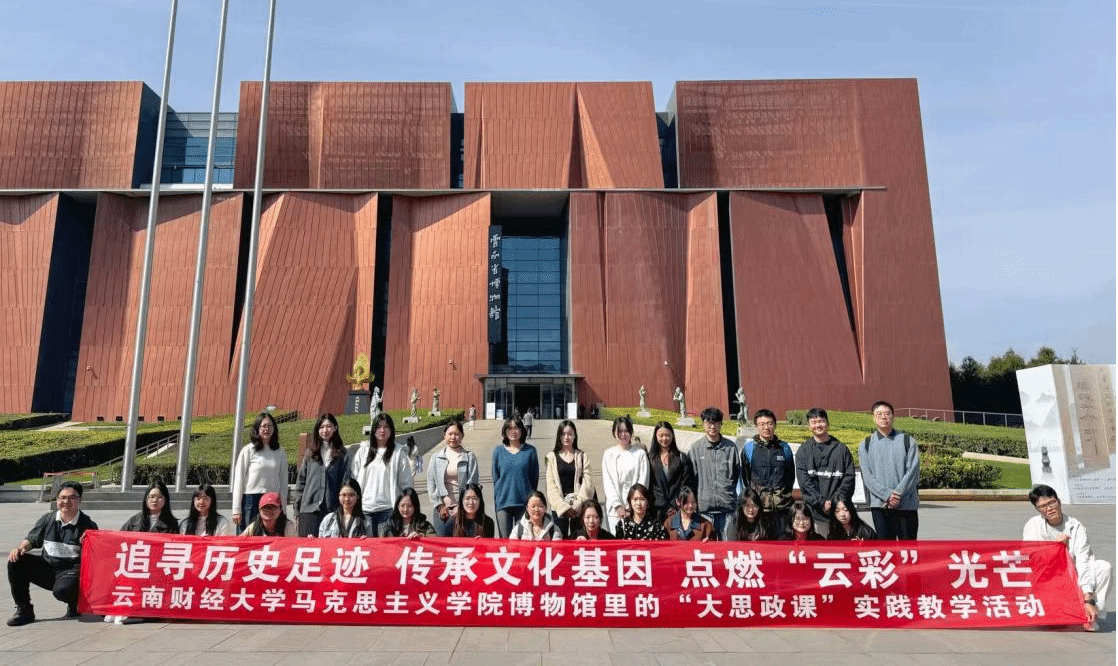 为深入学习贯彻党的二十届四中全会精神,推动实践学习与红色教育深度融合。2025年11月7日下午,马克思主义学院组织全体研究生赴云南省博物馆开展“行走的大思政课”实践教学活动,让青年学子在触摸历史文脉中感悟初心使命,在沉浸式学习中凝聚奋进力量。