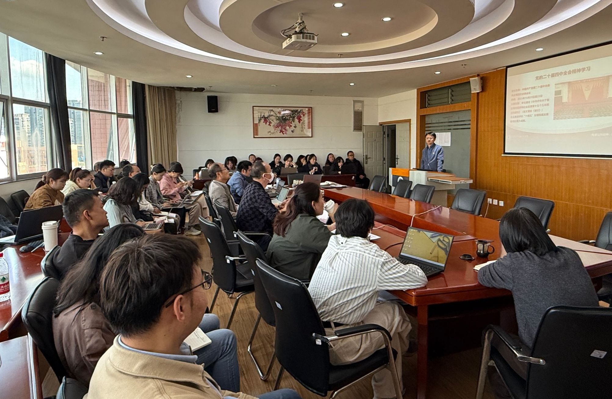 10月29日,财政与公共管理学院组织专题学习党的二十届四中全会精神,学院全体教职工参与学习,会议由副院长于洋航主持。
