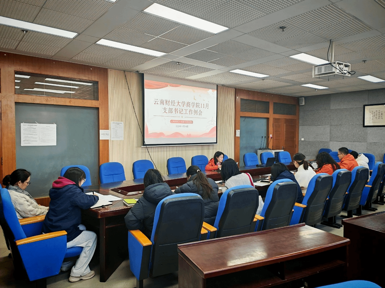 11月28日上午,商学院党委在逸夫楼507会议室召开2025年第11次党支部书记工作(扩大)会。会议由商学院党委书记王敏主持,各支部书记以及各科室负责人参会。