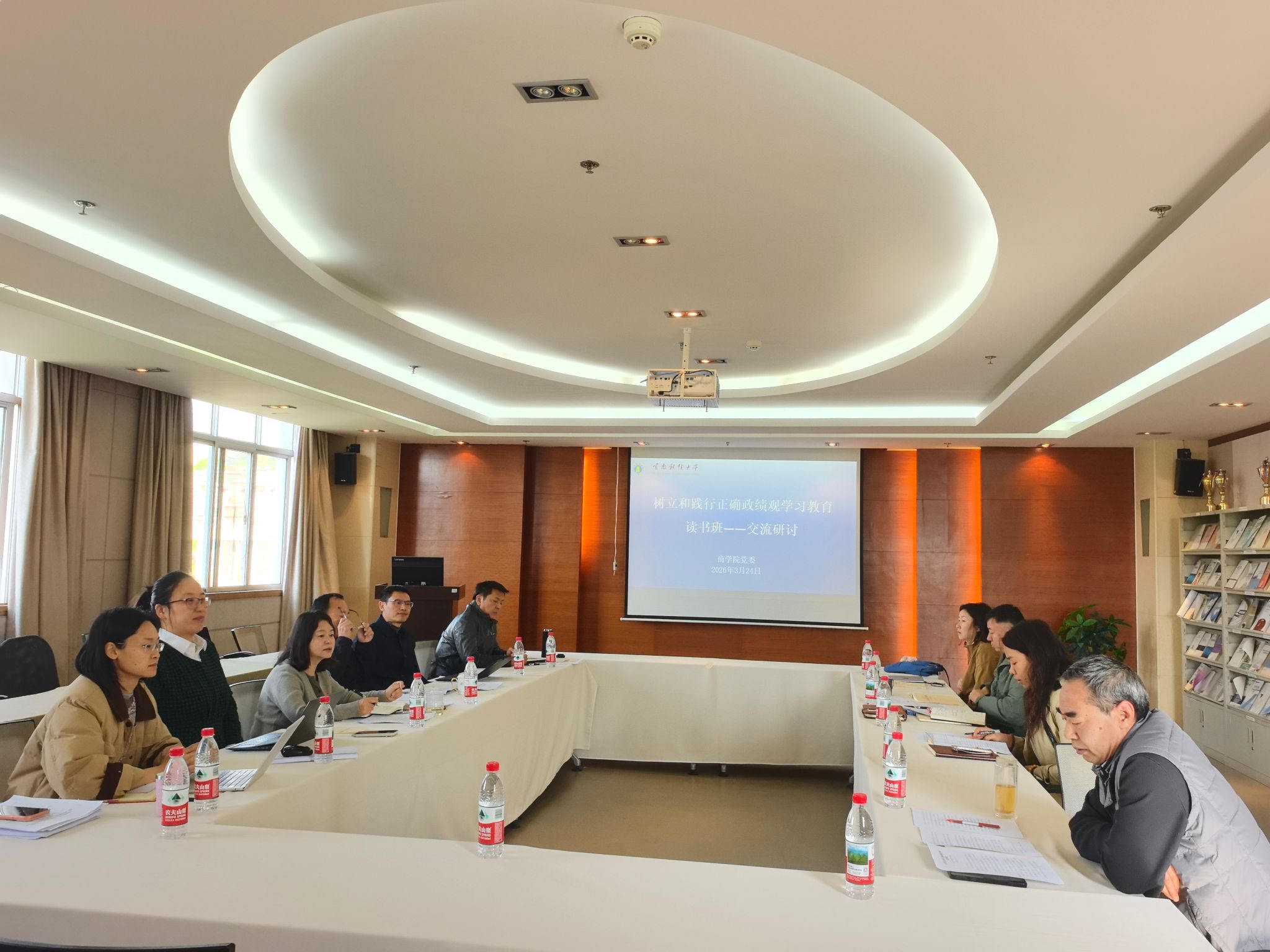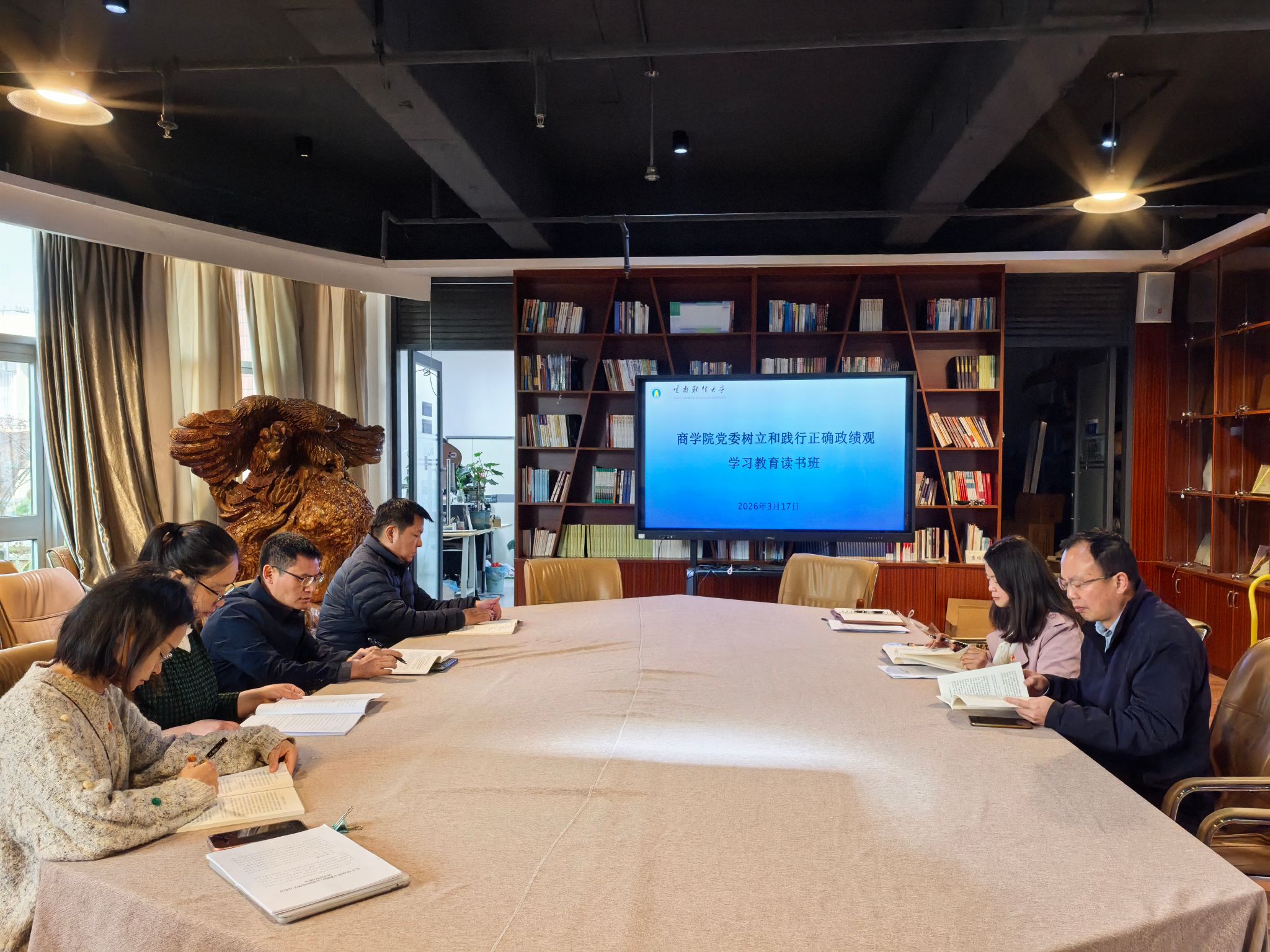 为深入学习贯彻习近平总书记关于树立和践行正确政绩观的重要论述,3月17日至24日,商学院党委按照“统一部署、相对集中,不走形式、注重实效”的原则,举办树立和践行正确政绩观学习教育读书班。学院党委书记王敏为召集人,领导班子成员、处级领导干部全程参加学习。