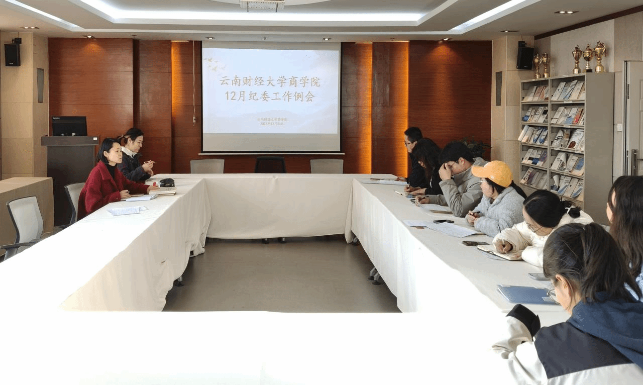 2025年12月24日下午,商学院在南院逸夫楼521会议室召开2025年12月纪委工作会议。会议由商学院党委副书记兼纪委书记饶篁主持,纪委委员张倩、范新河,各党支部书记及支部纪检委员参加会议。