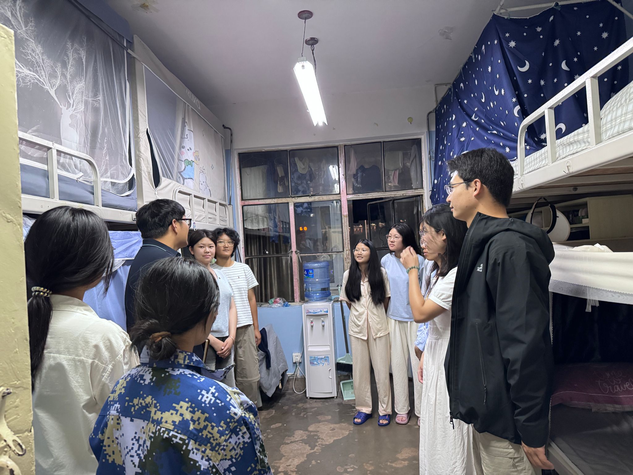 在走访过程中,王敏、杨增雄与新生亲切交谈,逐一询问大家的住宿安排、饮食适应情况,细致了解其入学后遇到的困难。学院领导共同查看了各宿舍的门窗闭合情况与消防设施完好度,随后询问同学们日常用电是否规范,着重提醒大家切勿使用大功率电器,及时拔掉闲置电源,避免安全隐患。并提醒同学们注意宿舍卫生,建议同学们制定轮值表,共同营造整洁舒适的居住环境,让宿舍始终保持干净有序。其他老师也针对教学管理流程、选课系统操作等实用问题,为新生进行现场解答,确保大家顺利开启大学阶段的学习。