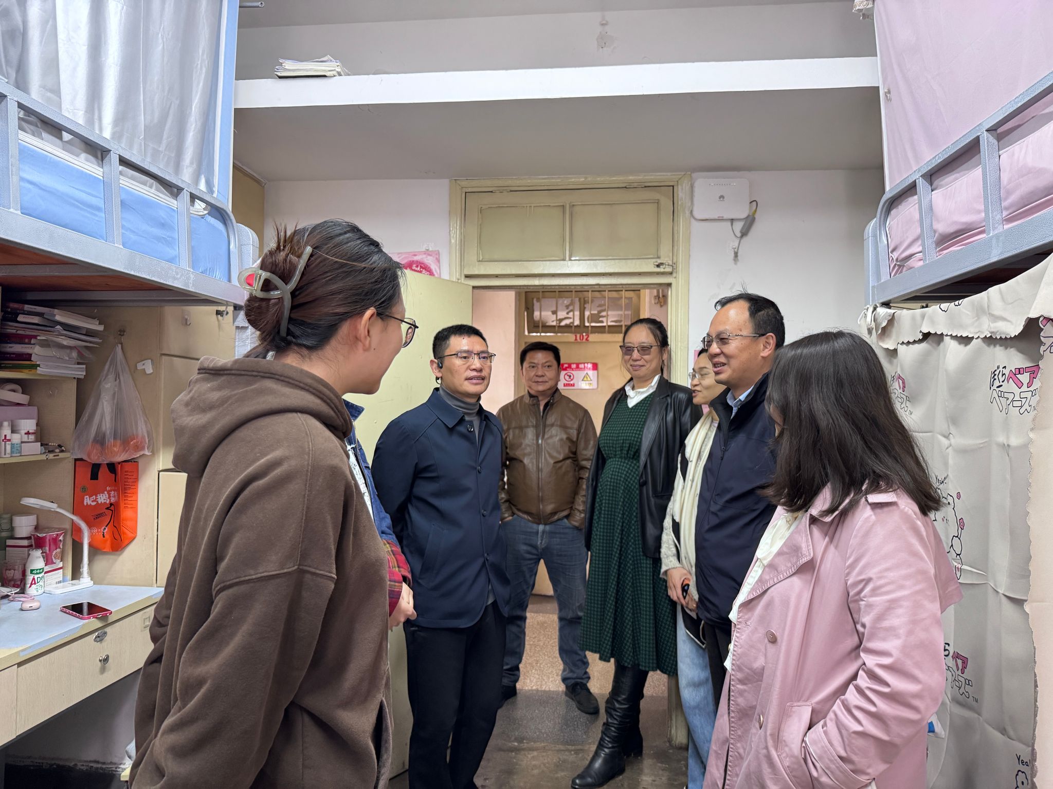 走访期间,老师们与同学亲切交谈,详细询问大家的学习、生活状况,认真听取了同学们关于宿舍生活的意见与反馈。同时,老师们逐一查看了各宿舍的安全与卫生情况,强调了宿舍安全与卫生的重要性,引导大家共同维护、营造整洁舒适的居住环境,让宿舍始终保持干净有序、温馨宜居。