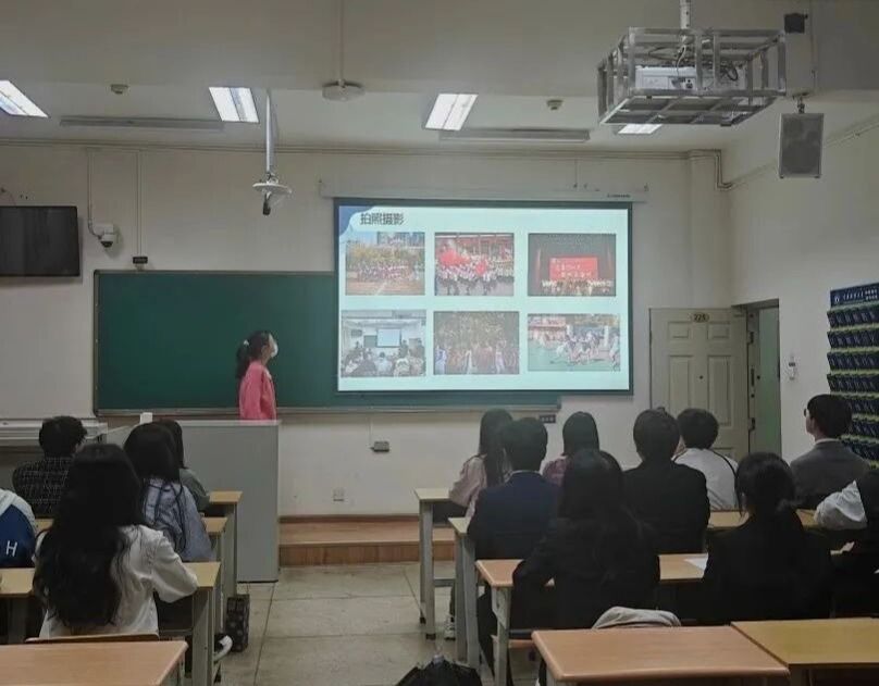 学生会主席团成员张和玉结合自身丰富的深入地讲解了拍照的基本技巧和实践经验注意事项。讲解过程中强调了构图、光线、角度等方面在拍照中的重要性。同时,围绕新闻稿件撰写与新媒体推文制作展开系统讲解。通过拆解学院活动典型案例,着重解析了新闻稿件的"总分总"结构,针对新媒体传播特性,聚焦公众号排版、色彩搭配、图文布局等方面进行讲解,有效提升了学生宣传骨干的新闻稿撰写能力和新媒体运营水平。
