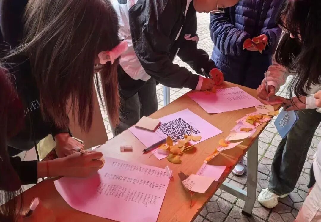 本次活动设置了两种参与方式,参与者可自主选择。一种方式是捡拾烟头:参与者领取垃圾袋和钳子,在校园内收集烟头,并在便签上写下对吸烟与禁烟的思考;另一种方式是创意树叶创作:参与者挑选完整树叶,在树叶或便签上书写寄语,或进行树叶拼贴画等艺术创作。