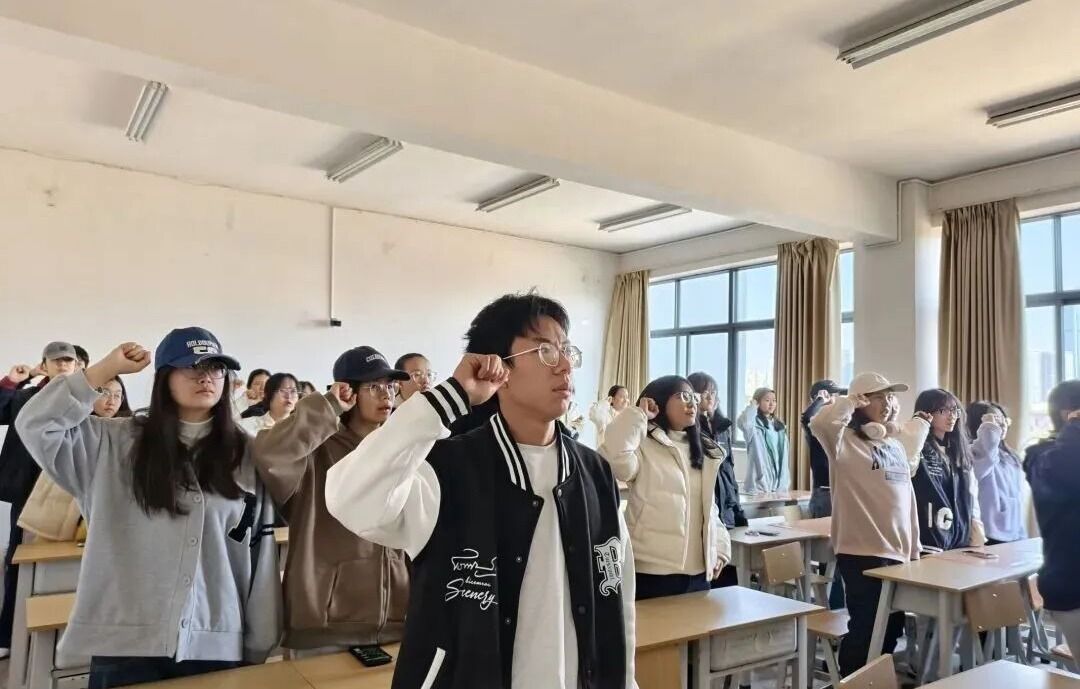 在诚信考试宣誓环节,全体学生骨干起立,举起右拳庄严宣誓:“我将在每一场考试中,自觉遵守考场规则,服从考场安排,严守考试纪律,维护考试秩序,坚信公平法治,爱护个人名誉,诚信考试,绝不作弊。”铿锵有力的誓言表达了大家坚守诚信底线的决心。