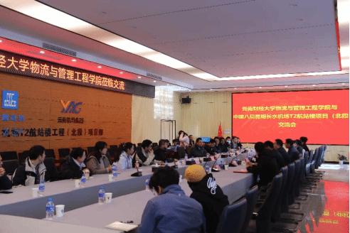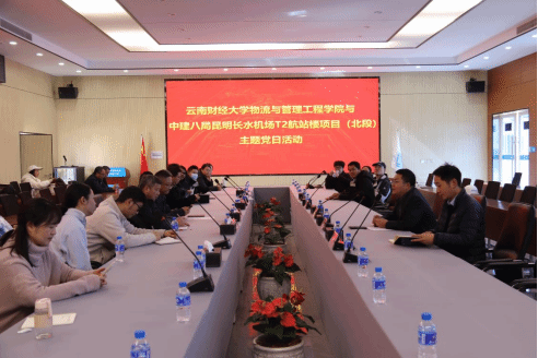 为进一步推进物流与管理工程学院教职工第三党支部“党建引领创建一流党建示范党支部计划”,落实“支部下到系部、支部建在项目、支部建到平台”原则要求,围绕人才培养、教学改革、学科建设、科研攻关等方面整合设计党建活动,打造“教研党建十大活动”等特色载体,2026年1月16日上午,云南财经大学物流与管理工程学院党委书记宗锐、副院长罗冬晖、教工第三党支部党员、工程管理系、城乡规划系、房地产管理系等教师代表一行30余人赴昆明长水国际机场改扩建工程T2航站楼(北段)项目现场开展访企拓岗暨联学共建主题党日活动,实地感受昆明长水机场改扩建工程在数字建造、BIM技术融合、智慧工地建设、绿色施工等领域的前沿实践成果。中建八局南方公司副总工兼昆明长水国际机场扩建工程T2航站楼(北段)项目总工林忠和、项目专职党支部副书记毛辉昉、项目副经理张龙云、项目副总工王磊、项目技术工程师张朝阳参加座谈,会议由昆明长水国际机场扩建工程T2航站楼(北段)项目专职党支部副书记毛辉昉主持。
