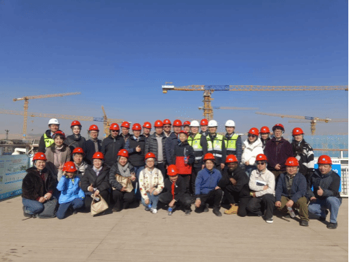 会后,在项目部讲解员的引导下,与会人员深入项目施工一线进行现场实地勘察,充分调研施工现场的实际情况,就过程创优、新技术应用、质量管控等方面展开了全面学习,详细了解大体量工程的BIM建模及智慧工地建设等情况,并围绕工程质量管理、细部节点做法、创优策划的实施落地等内容进行探讨交流,对项目的具体环境和施工进度有了更加深刻的理解。