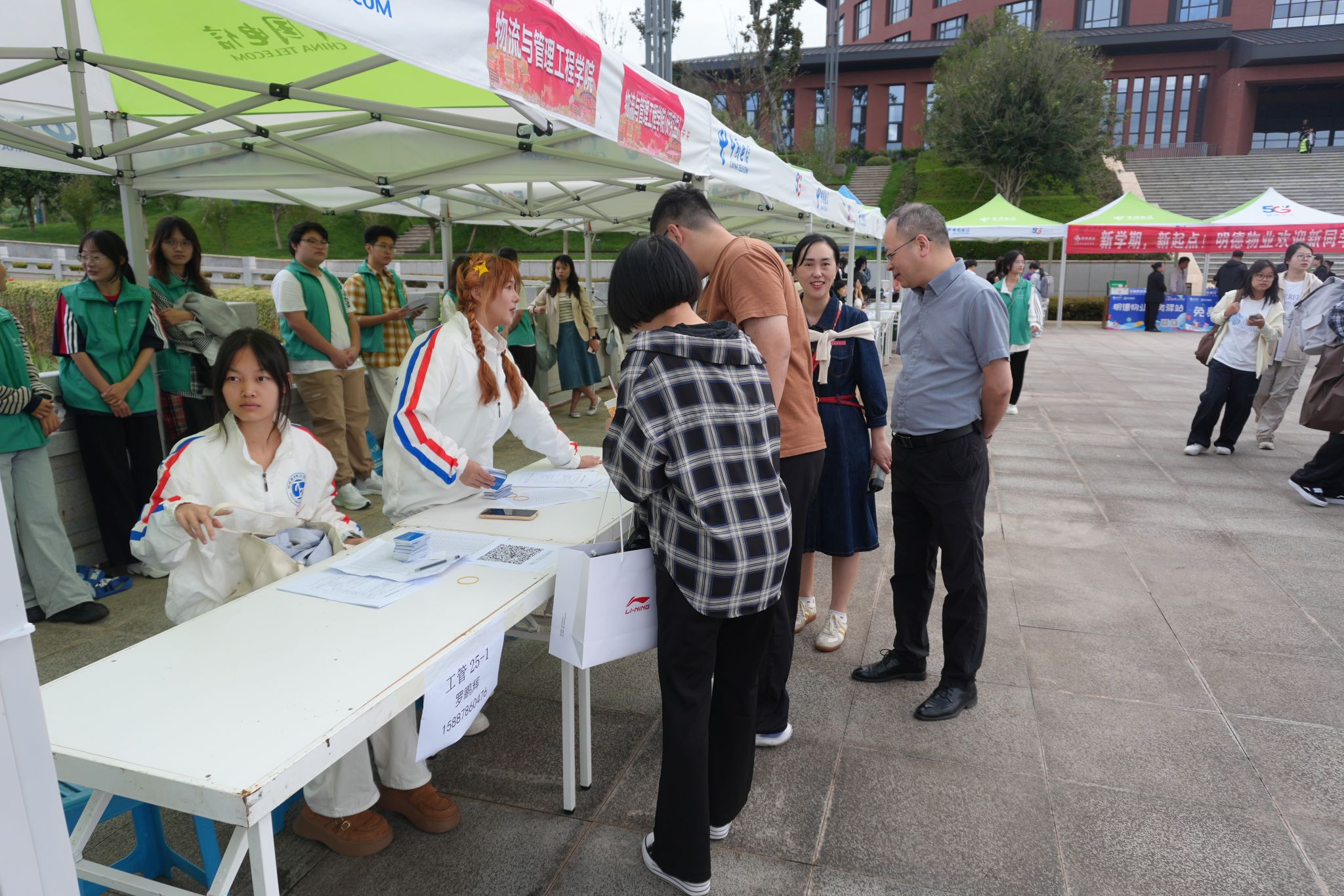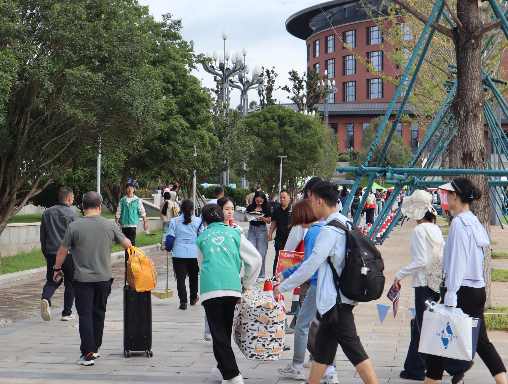 迎新现场秩序井然,报到流程高效顺畅。工作人员精准对接各环节,校院领导一线指导,主动与新生家长亲切交流,全面确保迎新工作的圆满成功,于细微处让新生感受到校园的温暖与关怀。
