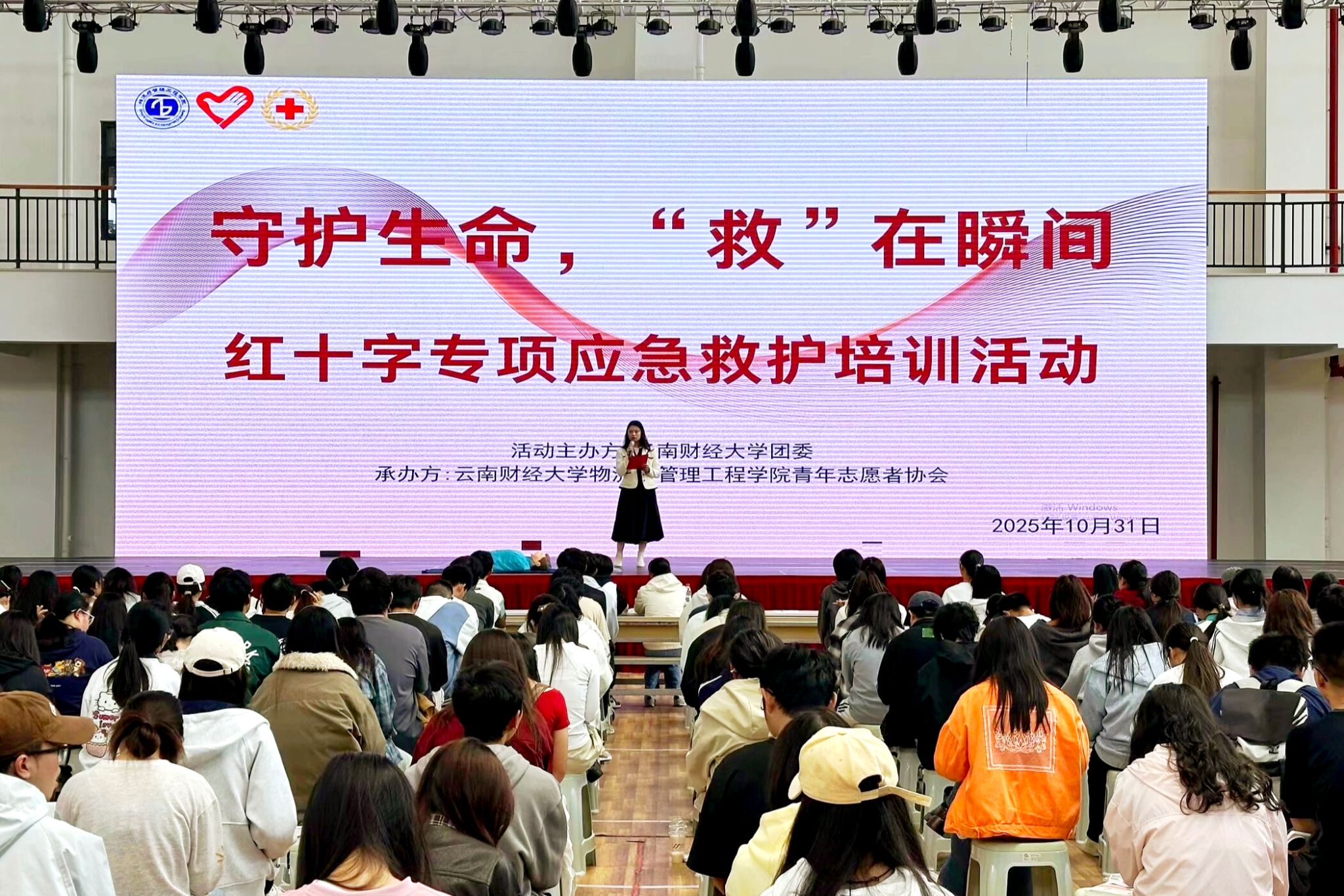 为进一步普及应急救护知识,提升全校师生的自救互救能力,推进应急救护培训“进支部、进课堂、进班级”,营造“关爱生命,救在身边”的校园氛围,2025年10月31日,云南财经大学物流与管理工程学院青年志愿者协会在安宁校区体育馆开展了“守护生命,‘救’在瞬间”应急救护培训活动。