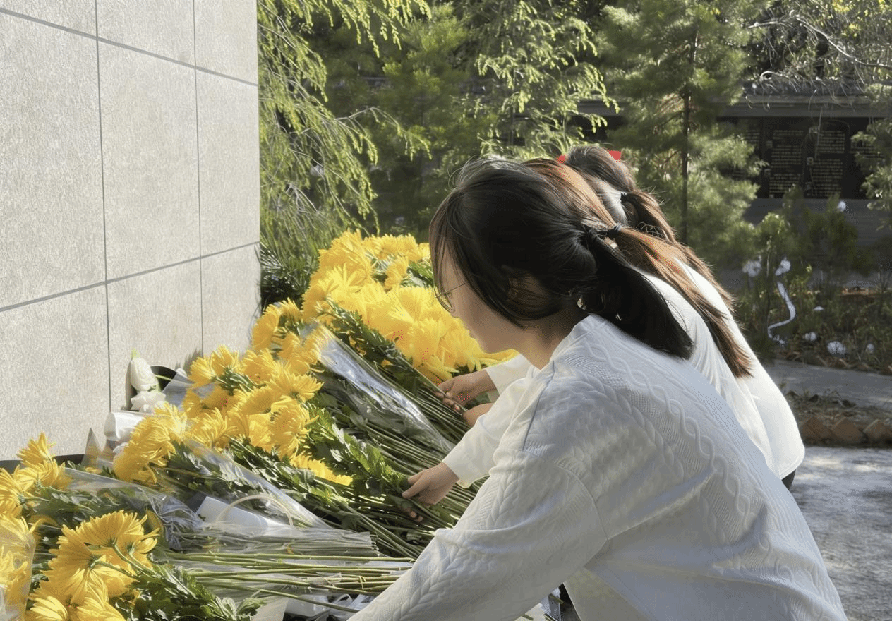 在场师生着装整齐、神情肃穆,列队步入陵园。在烈士纪念碑前,大家肃立默哀,深切缅怀先烈丰功伟绩,寄托深切哀思。随后,同学们手捧黄菊,缓步敬献于碑前并深深鞠躬,以庄重礼仪表达对革命先烈的崇高敬意。