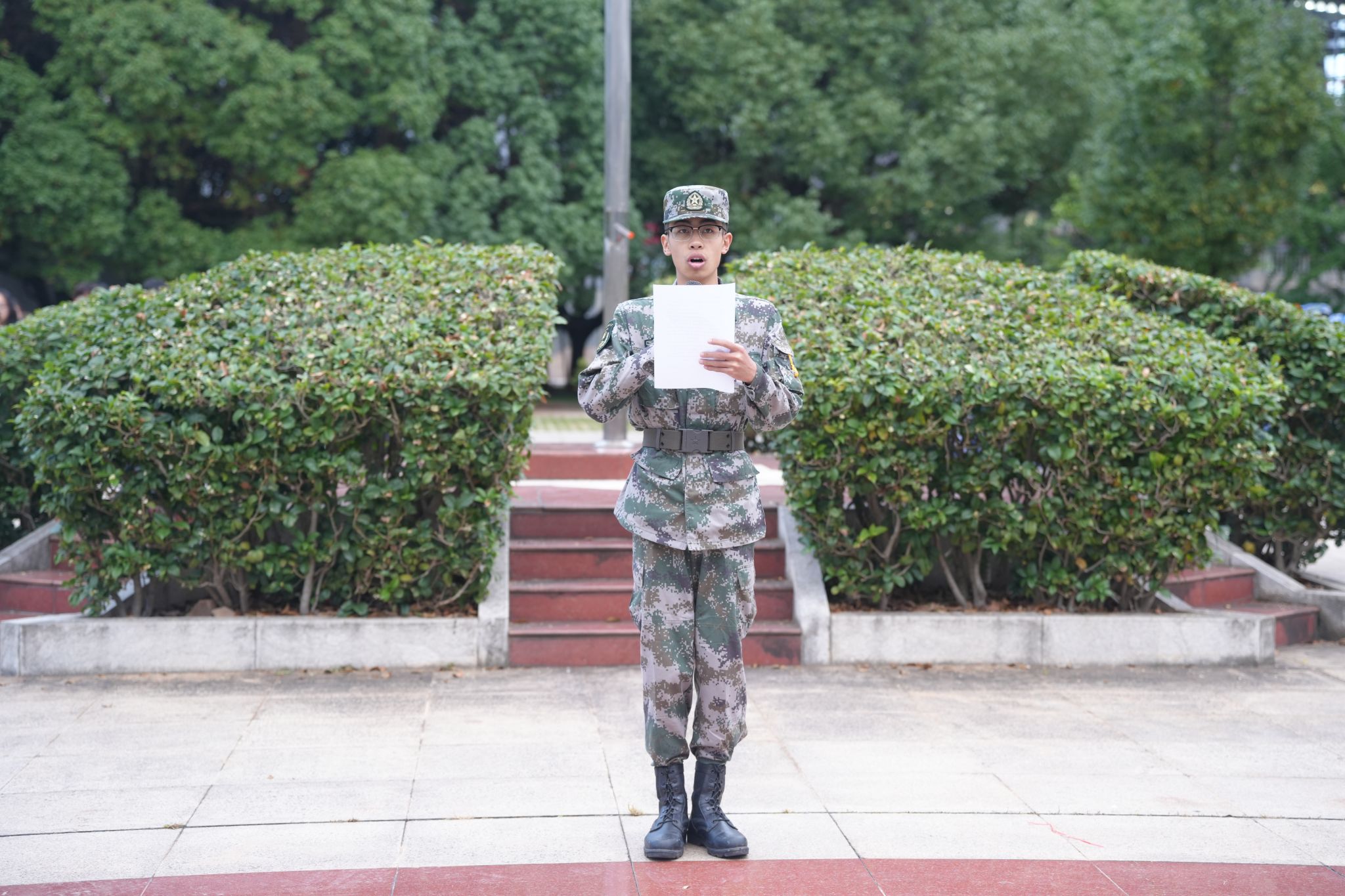 两名学生代表分别诵读了《在台儿庄战役中牺牲的黄人钦致其妻幼兰女士信》和《抗战家书——槟城妇女抗日救国骨干白雪娇给父母留下的告别家书》,表达了青年学子对在中国人民抗日战争暨世界反法西斯战争中浴血奋战烈士们的崇敬与缅怀之情。