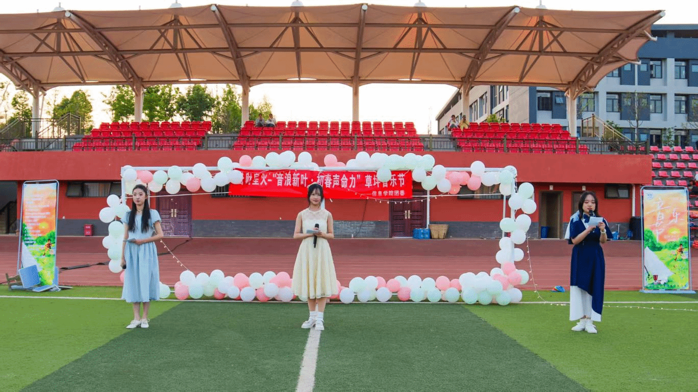 3月27日,信息学院团委在云南财经大学安宁校区田径场举办“三进一出”学风建设系列——“音浪新叶·初春声命力”草坪音乐节。