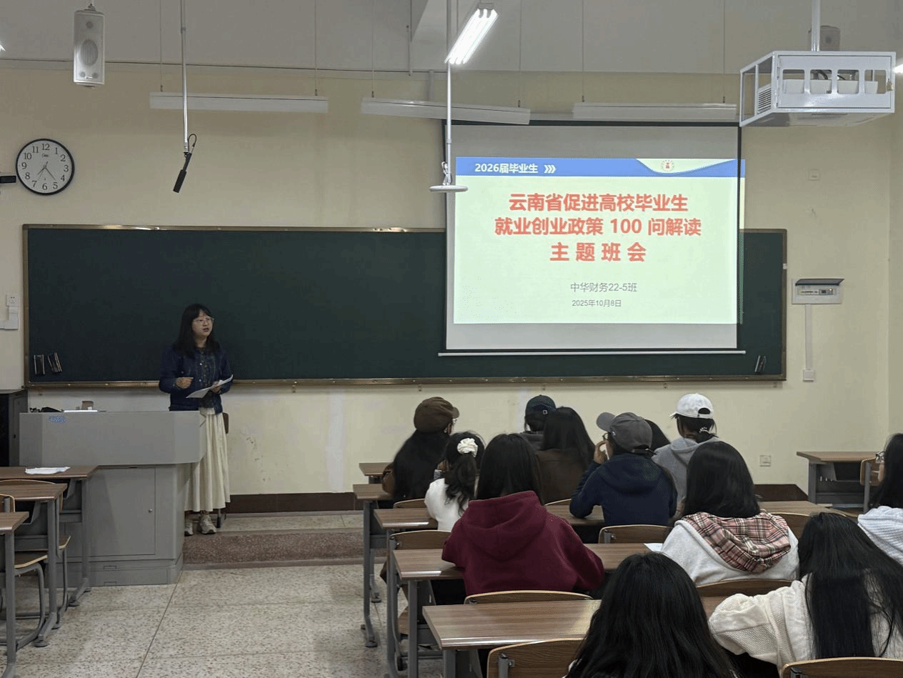 主题班会以《云南省促进高校毕业生就业创业政策100问(2025年版)》为主要依据,系统解读了当前就业创业相关政策。班主任围绕基层就业、企业吸纳、应征入伍、自主创业等重点方向,详细介绍了各类优惠政策的申请条件与办理流程,引导毕业生合理规划职业路径,有效利用政策资源。